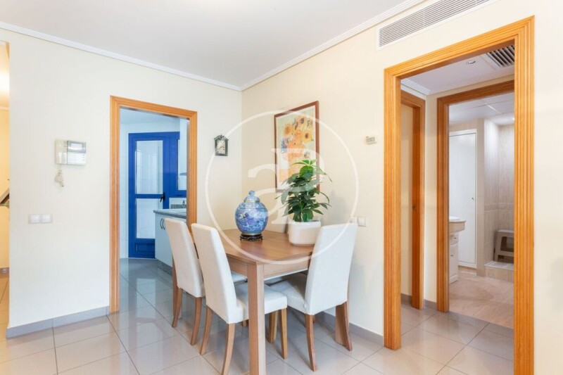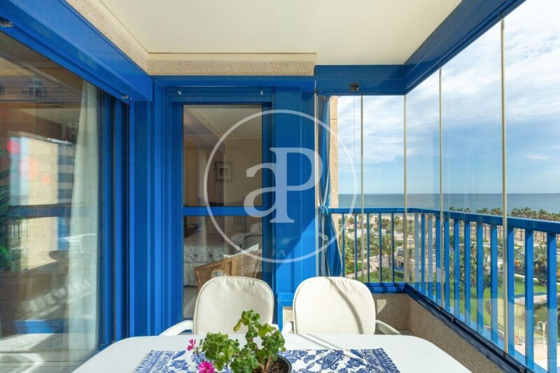 AProperties presents this exclusive apartment in the best area of Patacona, with all the services you can imagine within this luxurious urbanization, such as a cafeteria-restaurant, gym, tennis and paddle tennis courts, minigolf around the entire complex, doorman and 24-hour security. hours and a spectacular pool to be able to enjoy both adults and children since it has a specific space for a children's area with a lifeguard and surrounded by wonderful vegetation. All this just a few minutes walk from the beach. Discover elegance and comfort in this exquisite apartment on the beach, located at a privileged height that gives you panoramic views of both the sea and the lush surroundings of the residential area. Spanning a generous 108 m2, this property is a true coastal retreat. Upon entering, a cozy hall welcomes you and leads you to a meticulously maintained living-dining room, where every detail has been thought of to offer a warm and sophisticated atmosphere. The charming kitchen, designed with a functional style, is complemented by a practical laundry area and a gallery equipped with cabinets that guarantee organized and efficient storage. One of the greatest attractions of this home is its spectacular balcony-terrace, where a large table invites you to enjoy unforgettable moments. This space, covered by elegant glass, offers the versatility of being open to let in the sea breeze or closed to enjoy its warmth during the winter months. Without a doubt, this corner becomes the jewel of the house. The sleeping area is equally charming and accessible, with a main room that opens directly onto the terrace, and another room that promises a sublime rest. Between them, a large full bathroom adds a touch of luxury and comfort. The distribution of the home is exceptionally cozy, eliminating hallways and maximizing practicality and comfort in every corner. Located in Patacona, one of the most coveted areas of Valencia, this apartment is surrounded by high-quality services and a privileged socioeconomic environment, making it an unbeatable option for those seeking the best of coastal living. Don't miss this unique opportunity. Contact us for more information about this exclusive property and we will be happy to schedule a viewing that will allow you to experience in person the beauty and charm of your new home. .