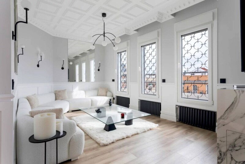 John Taylor presents a newly renovated penthouse with large terrace and very close to the Retiro. Located on the seventh floor of a building with a classic facade, this bright penthouse stands out for its great natural light that, together with its 3-meter ceilings and its large terrace to the east, make it an exceptional property. It has a large living room with access to the terrace, open kitchen and dining area. The private area has two large bedrooms both with en suite bathrooms and fitted closets. In addition there is another full bathroom that serves as a guest toilet and a laundry area. It has individual heating (gas), ducted air conditioning and electric blinds.