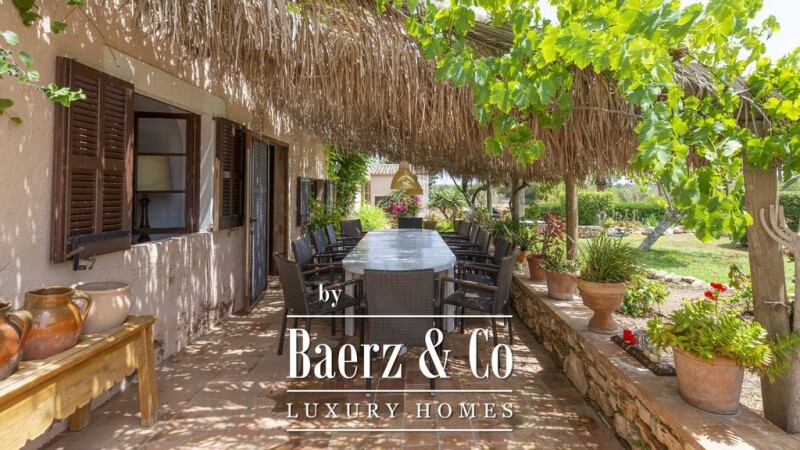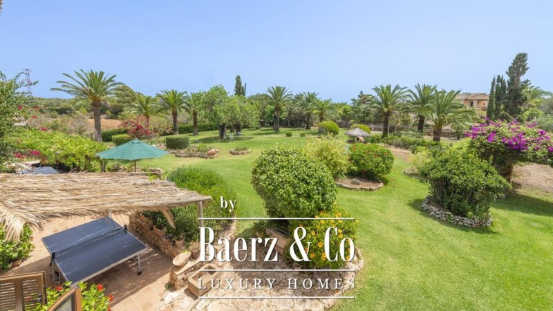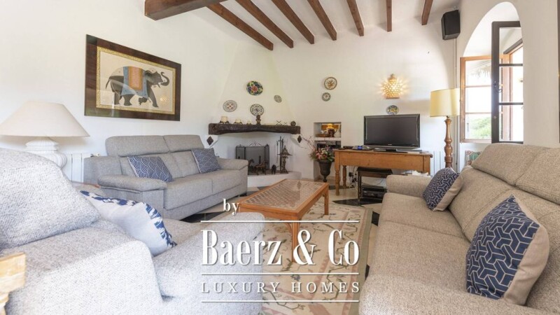 Just outside the village of Calonge, in the south-east of the island, is this traditional Mallorcan finca, which has a vacation rental license and complete privacy. The plot is about 5 hectares in size and impresses with its beautiful, park-like garden, which also offers numerous shady spots for relaxing or for leisure activities with friends and family. The approx. 200 year old finca, which has been maintained with great attention to detail, has a living area of approx. 370 m² and offers the following: there are two spacious and very cozy living areas, both of which have a fireplace, which also provide a warm atmosphere. Adjacent to this is the huge, fully equipped kitchen and a large dining area/breakfast table. In total, this property offers five spacious bedrooms, all with en suite bathrooms, as well as a separately accessible guest apartment with its own living/dining area and large kitchen. The outdoor area consists of numerous open and covered terrace areas and a large, inviting pool, which provides the perfect refreshment on hot summer days. In the well-tended garden there are countless Mediterranean plants, almond, pepper and laurel trees. There is also a barbecue area with a dining area under a pergola. There is also a shed on the property, which is suitable for storing a boat of up to 14 meters in length. A garage for one vehicle and at least five parking spaces complete this offer. - Ceiling beams - Pergola - Quiet location & privacy - Vines - Boat mooring - HOLIDAY RENTAL LICENSE ! and much more. Calonge is an agricultural village that belongs to the municipality of Santany, in the southeast of the island of Mallorca. The village is located between Alquería Blanca and Cala D'Or. From here you can quickly reach beaches such as Cala d'Or and Cala Sa Nau. The resort of Cala d'Or is only 2 minutes away by car. The 18-hole Vall d'Or golf course can be reached in 10 minutes, Palma and the international airport in approx. 50 minutes. The beautiful bays such as Cala Mondrago, Cala Santanyí, Cala Llombards and S'Amarador are only about 5 km away.