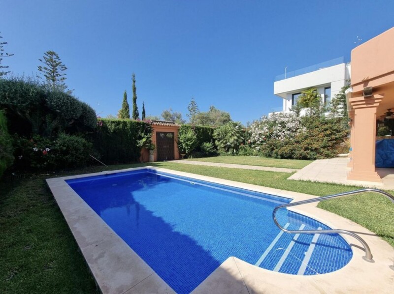 Modern-style family villa for sale in Casablanca, The Golden Mile, Marbella Looking for a dream property in Marbella? Look no further! This beachside villa is nestled in one of the most sought-after and emblematic urbanizations on the prestigious Golden Mile, offering breathtaking mountain views. Situated just steps away from the sandy beaches, this exclusive location provides the perfect blend of tranquility and convenience. Within a short two-minute walk, you can sink your toes into the golden sand and enjoy the soothing sound of the Mediterranean Sea. Additionally, the vibrant center and charming old town of Marbella are only a ten-minute drive away, while the famous Puerto Banús is just a pleasant fifteen-minute stroll along the scenic seafront promenade. The urbanization itself is a true gem, featuring a collection of beautiful Mediterranean-style detached villas, some of which have been tastefully renovated with a modern touch. Immerse yourself in the enchanting ambiance as you stroll through the picturesque streets, lined with elegant homes that exude timeless charm. As you enter the well-kept plot, you'll be greeted by a Mediterranean-style villa spread across two floors. The entrance level welcomes you with a bright and spacious living/dining room, complemented by a guest toilet for added convenience. A double bedroom with an en-suite bathroom offers a private retreat, while the separate fully fitted kitchen with a dining area overlooks the lush garden, creating the perfect space for culinary delights. Venturing upstairs, you'll find four bedrooms that cater to your every need. The master bedroom, boasting an en-suite bathroom, provides access to a private south-facing terrace, where you can bask in the warm Spanish sun while soaking in the mesmerizing mountain views. Another bedroom with an en-suite bathroom offers additional comfort and privacy, while two more bedrooms share a well-appointed bathroom. The outdoor area is a true oasis, featuring a meticulously maintained garden and a refreshing swimming pool. The back of the villa provides convenient access to the street, where a sliding gate allows for the entrance of cars, ensuring both security and ease of access. Investing in this exclusive villa is not only a wise financial decision but also a gateway to a luxurious lifestyle. With its unbeatable location and proximity to essential services, leisure facilities, trendy restaurants, and cafes, you'll have everything you need right at your doorstep. Don't miss out on this incredible opportunity to own a piece of paradise on the Marbella Golden Mile. Contact us today to secure your safe and lucrative investment in this extraordinary beachside villa.