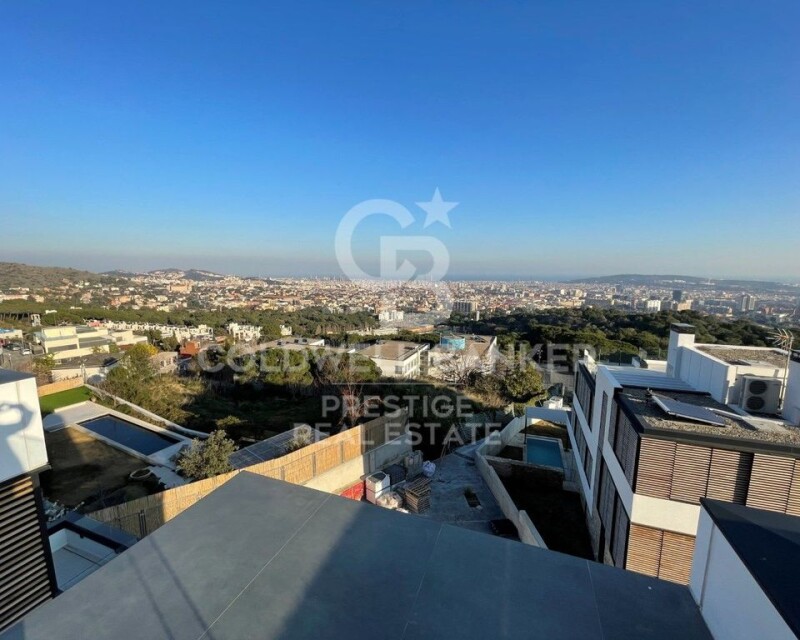 Brand new property located in the highest residential area of Barcelona and just a few minutes from the city centre.Impeccable style and total privacy. Mediterranean materials on multiple levels, creating a very elegant horizontal architecture. This fantastic house offers a view from the top, in all aspects, surrounded by a natural park. From the hillside of Can Caralleu in Sarria, the property offers an incomparable view of the city and the sea beyond. The skyline of Barcelona is below, but the heart of the city is within easy reach. The house offers 3 floors plus incredible roof terrace and basement including parking for 3 cars, machine room, complete maid's quarters. Garden and swimming pool. Lift connecting the whole property. The distribution is set out as follows: Entrance floor: Entrance hall - Toilet - Living dining room with fireplace - Fitted kitchen with dining area - Direct access to the garden and swimming pool. First floor: Master bedroom en suite with dressing room and a very nice terrace with views to the city. First floor: 2 double bedrooms with fitted wardrobes sharing a bathroom and another master suite with dressing room and office space which can also be converted into another bedroom. Third floor: Study area with bathroom and access to the fantastic roof terrace with panoramic views over the city of Barcelona.