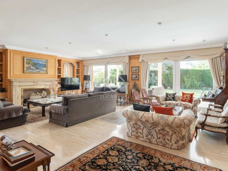 This stunning detached house is the epitome of comfort, elegance and functionality, designed to meet all the needs of modern, luxurious living. Entering on the ground floor, next to the entrance hall , you are greeted by a majestic staircase that leads to the upper floor. Next, we find a spacious and bright dining room living room with an open-plan design. The large windows offer direct views of the garden and allow natural light to enter, which perfectly connects the interior with the exterior. Next to the main living room , there is a second living room, ideal as a lounge area or entertainment room. This versatile space is perfect for relaxing or entertaining. In the garden we have a cozy chill out area with comfortable sofas and cushions, which provides a quiet space to enjoy the outdoors. The ground floor has a guest toilet, strategically located for the convenience of guests. The dining room, adjacent to the kitchen, is designed to facilitate interaction during meals, ideal for family dinners or meetings with friends. The kitchen diner is modern and functional, and is fully equipped. The exterior chill out area is the perfect place to enjoy sunny days, barbecue or relax by the water. On the ground floor, there is also a spacious double room with a private bathroom and dressing room, to enjoy greater comfort and privacy. The first floor houses the master bedroom en suite, with a dressing room and access to a charming terrace, perfect for enjoying moments of tranquility. A small and pleasant living room separates two other double bedrooms. They are designed to maximize comfort and functionality, and share a full bathroom . At the opposite end of the house, we find an en-suite bedroom that offers additional privacy. There are two other double bedrooms, also separated by a small secondary living room , which share a full bathroom and thus maintain an almost perfect symmetry. They also have access to the rear terrace. The property includes a large parking area with capacity for more than 10 cars. A small service apartment, with an en-suite bedroom, dining area and kitchen, ensures the independence and comfort of the staff. Finally, a storage room and a machine room and pantry are included. Don't miss the opportunity to visit this magnificent property and discover all its wonders. Request your visit to Lucas Fox today!.