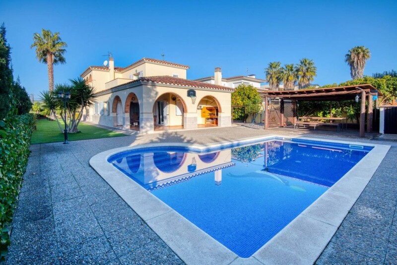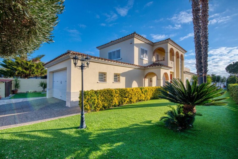 Nice villa ten minutes walk from the beach on a plot of 823 m2. From the entrance we access to a bright dining room and spacious kitchen, both with access to a covered terrace and the pool with its chill-out area. On the lower floor we have a double bedroom with fitted closets, bathroom. On the upper floor there is a double bedroom with spacious dressing room and private terrace. Two bedrooms with fitted closets and a full bathroom. The landscaped garden offers a cozy summer dining room and a parking area for two cars. Remarks: garage for two cars, alarm, laundry, automatic irrigation, swimming pool with salt water system, oil heating, aluminum shutters.