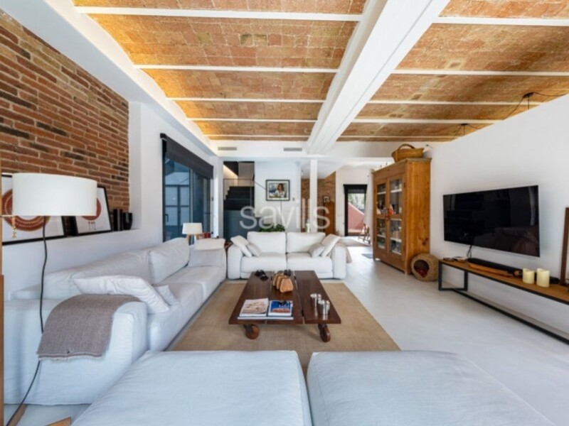 Savills presents a wonderful newly refurbished 236 m² house in the upscale area of Sarria, a quiet and prestigious residential neighbourhood with the best international schools. The house has been completely renovated and adapted to current needs with an exquisite, simple, and modern design, using high-quality materials to create a comfortable atmosphere where modernity blends with the house's historical elements. The property features a perimeter exterior with different spaces: a sunny area with a chill-out zone, a pergola with a seating area and summer dining space, an elongated pool, and another seating area at the back. There is a parking area for two vehicles at the entrance. The property consists of three floors connected by a staircase and a lift. The ground floor houses the living-dining area, an open and bright space that connects directly with the outdoor garden. The modern kitchen is semi-open, separated only by a wall, and contrasts with its elegant dark tone. This floor also has a guest toilet and a utility area. The first floor has a hall with several storage cupboards that leads to three bedrooms with good ceiling height, one of which is en-suite with a full bathroom, while the other two share a bathroom with dark tones. The top floor features the impressive main master suite with a vaulted ceiling and beautiful views of the sea and city. This spacious area includes a bedroom, living room, dressing room, full bathroom, and a large study. The beautiful refurbishment stands out for its modern style, combining white with black finishes, oak, and original elements such as vaulted ceilings, wooden beams, and exposed brickwork details on the walls. A great opportunity for families with children to live in a beautiful house in a very pleasant, quiet, and well-connected area of Barcelona. Do not hesitate to contact us to visit this magnificent property.