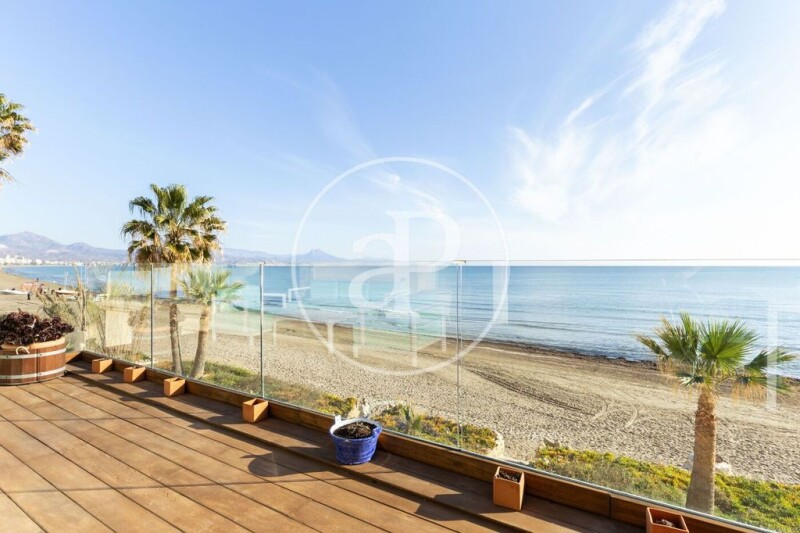 AProperties exclusively presents this unique property in the real estate market. Located in one of the most prestigious areas of the Costa Blanca, this stunning property offers an incomparable living experience, fusing privacy, exclusivity and unrivalled views of the Mediterranean. Situated on the seafront, directly on the beach, it stands out for its architectural design integrated into the landscape and its south orientation, which allows for natural light throughout the day. In the exclusive Cabo de las Huertas, a natural reserve of singular beauty, the villa has direct access to one of the most coveted coves in Alicante. Its privileged location offers unobstructed sea views, turning every sunrise and sunset into an incomparable visual spectacle. Built on the original rock, the property has large and elegant spaces with a marked Ibizan style. Noble materials, such as natural stone, enhance its authenticity and sophistication, creating a true sanctuary of peace with exceptional panoramic views. Completely refurbished in 2000, the villa has been renovated and extended since then. In addition, an exclusive extension project has already been approved, which allows for an additional 200m² to be added to the current 520m², bringing the total to 720m². This gives the possibility to personalise the property according to the highest standards of luxury and design. Located in a quiet area but surrounded by exclusive services, restaurants and shops, this residence is ideal for year-round living, just 10 minutes from the centre of Alicante. A unique and unrepeatable opportunity in the real estate market of the Costa Blanca. For more information or to arrange a private viewing, do not hesitate to contact aProperties. .