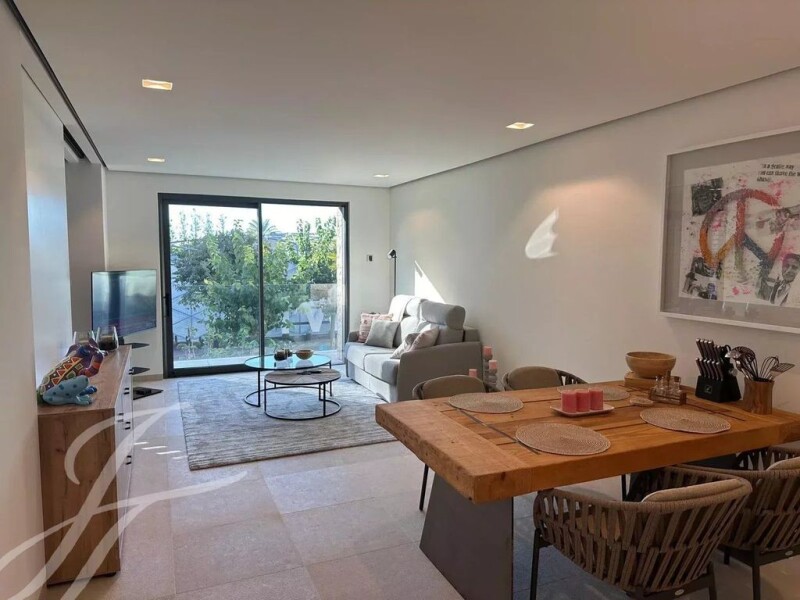 This brand-new flat in a prestigious residential complex offers a prime location—central yet tranquil, with the beach just steps away. Only 10 minutes from the airport and 5 minutes from Ibiza's old town, it provides seamless access to top beach clubs and local attractions. The entire building, along with the apartment—which features a bedroom with an en-suite bathroom, an open-plan living area with a kitchen, and a private parking space has been meticulously designed by the renowned architect Javier Armbruster. The modern design blends luxury with Ibizan character, featuring a striking white façade adorned with vertical gardens and a breathtaking 15-metre-high central courtyard. Fully furnished with premium finishes, the flat boasts kitchens fitted with Gaggenau appliances and Dornbracht fixtures. Residents enjoy alongside exclusive amenities including a spa, beach pool, gym, and lush tropical gardens. With 24/7 concierge service, private boats, electric bikes, and underground parking, this property offers the ultimate in convenience and sophistication.