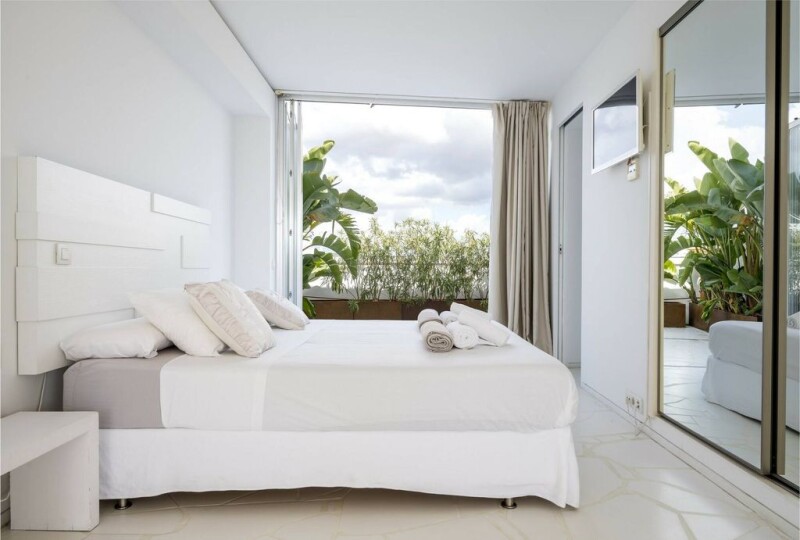 Front line penthouse with spectacular views over the marina in the brand new building Las boas by renowned architect Jean Nouvel, walking distance from Marina Ibiza, shops and clubs. The building has been designed to combine forms taken from traditional Ibiza and Mediterranean living, creating unique and flexible spaces that reflect its ancient and modern heritage. The apartment has been individually tailored allowing the terraces to be completely open to the living room and bedrooms. An enormous swimming pool, 24 hour concierge service and an underground parking space complete this property in an unmatched location between some of the world´s most exclusive clubs and restaurants.