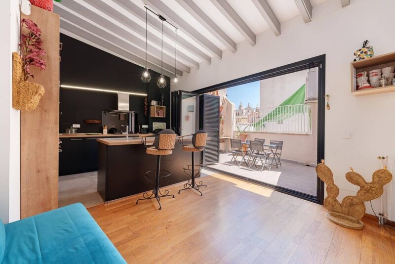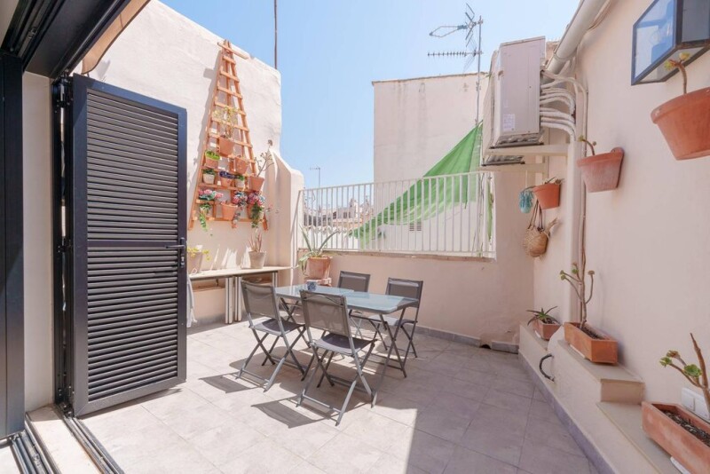 This charming apartment is in a prime location, directly on the Paseo del Borne, the main shopping street in downtown Palma. Access to the apartment is through a staircase and it is spread over the third and fourth floors, which can also be used independently. The apartment has a built area of 140m2 and features a cozy 20m2 terrace. It was completely renovated in 2021, offering a modern and updated look. On the ground floor, we find two bedrooms with en-suite bathrooms and a small kitchen. On the upper floor, there is another bedroom and an additional bathroom, a new kitchen with a seating area, and a loft that can be used as a fourth bedroom or a multifunctional room. Also, on this floor, there is a terrace that provides tranquility and privacy, completing the offer of this wonderful apartment. It is the ideal property for those looking for a pied-à-terre amidst the vibrant city life. Undoubtedly, the Paseo del Borne is the most elegant artery of Palma, so it's no surprise that many luxury brands have chosen to establish themselves in this place, known as the city's golden mile. The Borne offers ample space with a tranquil atmosphere, despite the bustle of downtown Palma.