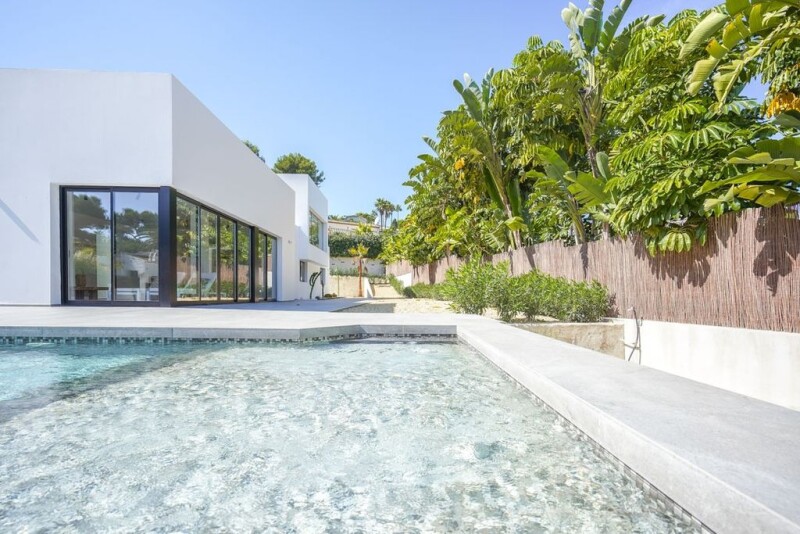 This beautiful new build villa in Jávea is fully ready to go and offers everything you need to enjoy the Mediterranean life. Located on a flat plot in a quiet residential area, this modern property combines privacy with the convenience of nearby beaches, shops and restaurants. With a timeless design, lots of natural light and high-quality finish, this is an ideal home for those looking for comfort and luxury on the Costa Blanca. Upon entering you will be welcomed in a stylish hall, where there is also a guest toilet. From here you reach the spacious living room, which is in open connection with the modern kitchen and a practical utility room. Thanks to large sliding windows, the living area flows seamlessly into the spacious pool terrace, perfect for relaxation and outdoor life. The villa has three spacious bedrooms, each with an en-suite bathroom and built-in wardrobes. Two of these bedrooms are on the ground floor, while the master suite is on the first floor. This private room features a luxury walk-in closet, a private bathroom and direct access to two spacious roof terraces. Here you can enjoy the sun and the beautiful surroundings at any time of the day. Thanks to the large windows, the house enjoys an abundance of natural light, which creates an open and airy atmosphere. In addition, the villa is equipped with air conditioning in all rooms, ensuring optimal comfort throughout the year. The maintenance friendly Mediterranean garden adds extra charm, while the automatic gate and spacious parking space can accommodate multiple vehicles. With a prime location just five minutes from the beach and all essential amenities, including supermarkets, schools, pharmacies and medical facilities, this villa offers an unparalleled living experience. Don't miss this unique opportunity to own a ready-made modern villa in one of the most beautiful spots on the Costa Blanca. Contact us today to plan a visit!.