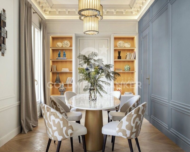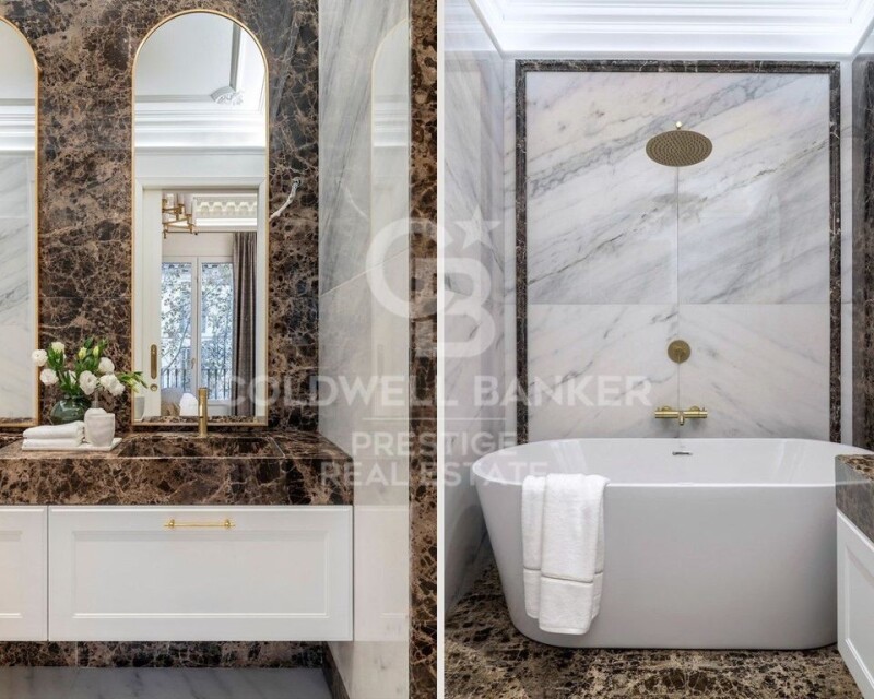 Discover this spectacular residence located on the top floor of a classic building in one of the city's most sought-after areas. Just steps away from the iconic Passeig de Gracia and a short distance from Placa Catalunya, this home offers a unique combination of history, design, and modern comfort. With a surface area of 161 m², this property has been exquisitely renovated, achieving a perfect balance between sophistication and functionality. It features three spacious en-suite bedrooms, along with an additional space ideal as a dressing room or office. The optimized layout ensures privacy and comfort in every corner of the home. Its seven French-style balconies offer charming views of the city, while a private 10 m² terrace with a relaxation area and greenery provides a tranquil oasis. The semi-open kitchen, fully equipped with high-end Siemens appliances, Italian Doimo Cucine furniture, and a wine cellar, connects to a convenient laundry area. Exclusive details and finishes: - Ceilings up to 3.70 meters high with handcrafted plaster cornices and indirect LED lighting. - French herringbone oak wood flooring and natural marble mosaic in the kitchen. - Bathrooms clad in natural marble with custom finishes. - High-quality Italian marble kitchen countertop. - Hand-carved marble fireplace with a bioethanol system. - Brand-new built-in wardrobes with interior LED lighting and ample storage space. - Luxury custom-made furniture and high-end textiles, with wallpaper and lighting included in the price. - Queen-size bed bases with built-in storage, optimizing space. - Double-glazed windows and renovated classic carpentry. - Custom-made classic-style doors, preserving the home's original elegance. - Integrated multi-zone sound system and advanced security system. - Comfort and technology in every room: The home is equipped with underfloor heating in the kitchen and bathrooms, gas radiator heating, and a Mitsubishi dual-duct air conditioning system to ensure maximum comfort throughout the year. A prestigious home: Designed by a renowned architectural studio, this property has been featured in interior design magazines, showcasing its exclusive character. Additionally, residents have access to a communal terrace with panoramic city views. This fully furnished home, ready to move into, represents a unique opportunity for those seeking a luxury property in a prime location. For more information or to arrange a viewing, please do not hesitate to contact us.