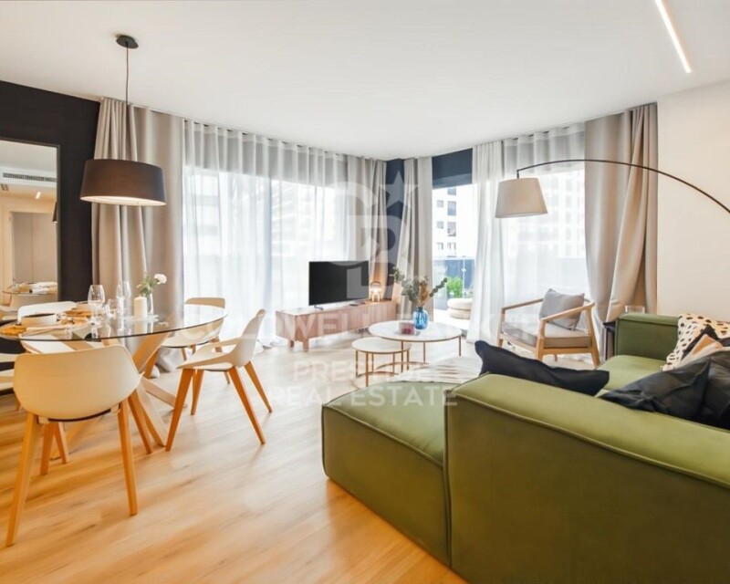 This exclusive 3-bedroom, 2-bathroom apartment features a spacious, bright living room connected to a stunning 38 m² wraparound terrace. Every detail is designed for comfort and style. The price includes a parking space valued at €23,000. Enjoy luxurious amenities like a designer pool, gym, and coworking area. Prime location with metro and bus access, connecting you to central Barcelona in just 25 minutes.