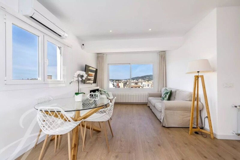 Bright penthouse recently renovated with spectacular views of Palma. Very cozy and with 2 large terraces to enjoy sun or shade at any time of day. Of very modern and comfortable design, it offers two bedrooms, an open space kitchen and living room very well differentiated from each other and with access to the terraces at the same level. Fully equipped kitchen, central heating and air conditioning and a fireplace guarantee maximum comfort throughout the year.Possibility of parking. Palma Centre with its national and international residents has become one of the most cosmopolitan second home residence areas in the Mediterranean. Offering an incomparable selection of fine dining options, cultural and sports activities together with its own beach makes it an ideal location for a full time or part time residence. Due to the expansion of the city many international investors are now looking to new areas that were in the past predominantly were for locals. Area such as the Avenida’s, and its secondary streets have become increasingly attractive due to the competitive difference in prices. Palma offers the best transport hub on the island, just 15 mins from the airport, with the main bus, metro & train station in the Plaza España and the excellent public transport system means having a car is not a necessity. The port, also in the centre offers numerous connections to the other Balearic Islands, mainland, and other countries, apart from being one of the top cruise ship destinations in the Mediterranean.