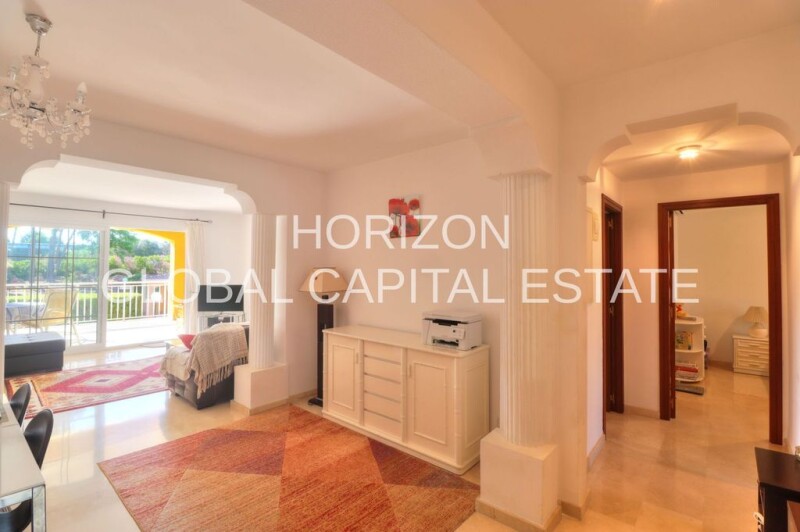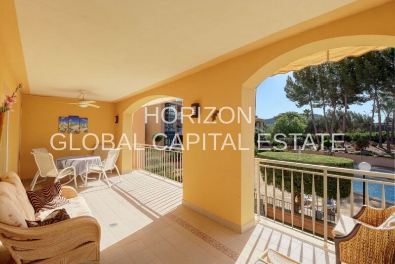 Fantastic apartment with large terrace in the popular area of Santa Ponsa This charming apartment is located in the beautiful municipality of Santa Ponsa, a sought-after residential area in the southwest of Mallorca, Spain. Nestled in a picturesque setting, this property offers excellent access to the local transport network and is only 1.22 km from the highway, providing quick access to surrounding towns and attractions. The location is ideal for families, as there is a kindergarten in the immediate vicinity, just 0.48 km away, and the elementary school can be easily reached on foot in 0.31 km. For daily needs, shopping facilities are easily accessible at a distance of just 3.65 km, while the nearby bus stop provides additional mobility at just 0.54 km. Santa Ponsa itself offers a wide range of leisure activities, including beautiful beaches, golf courses and a variety of restaurants and cafés. The central business zone of Santa Ponsa is also just 15.5 km away, giving residents easy access to a variety of cultural and commercial amenities. This apartment is the perfect retreat for those who want to enjoy the tranquillity and beauty of the Mallorcan countryside without sacrificing modern amenities. Welcome to your future dream home in Santa Ponsa - an elegant apartment that offers you all the comforts of modern life. This well-kept property, solidly built in 2001, has a generous living space of approx. 105 m² and offers luxurious living possibilities on a beautiful plot of approx. 120 m². With three stylishly designed rooms, including two comfortable bedrooms and two fully equipped bathrooms, this apartment fulfills all your living needs. The master bedroom impresses with its own en suite bathroom, equipped with a shower and bathtub as well as underfloor heating, which also keeps the second bathroom cozy and warm. The bright living and dining room impresses with large windows that reveal an incomparable view of the communal pool area and the well-tended gardens. The open-plan fitted kitchen is fully equipped with modern appliances and invites you to enjoy culinary delights. From here you can access a spacious balcony where you can enjoy the sun. A spacious terrace, a private storage room and the choice between a private underground garage or an outdoor parking space complete the benefits of this property. The quiet location nevertheless offers proximity to all the amenities of Santa Ponsa. The beach and the town center, with a variety of stores, restaurants and bars, are just a short walk away. Take the opportunity to acquire an exclusive apartment in this sought-after location and experience the good life that Santa Ponsa has to offer. - Bathroom with window, bathtub and WC - Open fitted kitchen with full equipment - Private storage room available - Flooring made of high-quality tiles - Large terrace for relaxing hours outdoors - Two parking spaces: Underground garage and outdoor parking space - Type of heating: Efficient wall radiators - Additional comfort: underfloor heating in both bathrooms The information provided by HORIZON GLOBAL CAPITAL ESTATE S.L. has been researched and published with the greatest possible care. However, the accuracy, completeness and timeliness of the information cannot be guaranteed and HORIZON GLOBAL CAPITAL ESTATE S.L. therefore accepts no liability for any errors or omissions. Unannounced price changes or withdrawals of offers cannot be ruled out.
