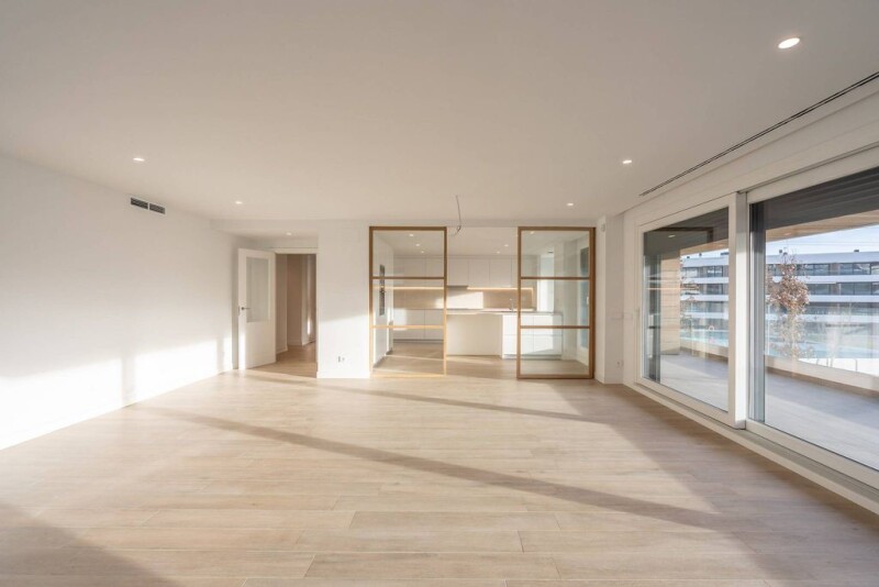 ^**^SPECTACULAR APARTMENT TO PREMIERE IN THE URBANIZATION "EL JARDIN DE LA MORALEJA" ^**^ This spectacular brand new apartment is a real treasure. Upon entering, you will find a spacious lounge that invites relaxation and comfort. With almost 40 square meters, this space lends itself perfectly to share special moments with family and friends. The kitchen of almost 30 square meters, a true paradise for lovers of cooking, with a glass screen that separates the area from the living room, and that can be fully opened for a diaphanous space. Here, natural light floods the space, making every culinary moment a unique experience. Energy-efficient appliances are not only efficient, but also stylish and modern of the latest generation This home has 4 bedrooms, two of them in private suites to offer maximum privacy and comfort. The master bedroom is simply stunning, with 26 square meters and a dressing area that fulfills anyone's dreams. Now, let me take you to the jewel in the crown: the spectacular 78-square-meter perimeter terrace. From here, the views of the surrounding greenery are simply breathtaking. Imagine enjoying your morning coffee or an intimate dinner as the sun sets on the horizon. This terrace will become your private sanctuary, a place to relax and enjoy the serenity of the surroundings. Every corner of this house has been carefully designed to offer you maximum comfort and energy efficiency. From the ventilated façade to the radiant-refreshing floor, every detail has been considered to provide you with a sustainable and comfortable home. The urbanization "El Jardín de La Moraleja" is more than a community; It's a lifestyle. With paths winding through meticulously manicured gardens, adult and children's pools, and outdoor lounging areas, every day will feel like a vacation. The most up-to-date services are available in the community: Reading room and coworking Heated spa and sauna Gym, boxing and ballroom Lobby and Kids Club Slides and Zip Line Located north of the Madrid metropolitan area, this home offers you easy access to the main M40 and M50 ring roads, quickly connecting you to the capital and Adolfo Suárez Madrid Barajas Airport. Plus, you'll enjoy proximity to golf courses, shopping malls, and great educational options. This is not just a floor; It is a home that will bring you years of joy, comfort and elegance. For more details or to arrange a visit, do not hesitate to get in touch. I'm here to answer all your questions and show you more closely the place that could become your new home. ^**^This announcement is non-binding and may contain errors. It is shown for information purposes only and is not contractual^**^ WE DO NOT CHARGE COMMISSION TO THE BUYER.