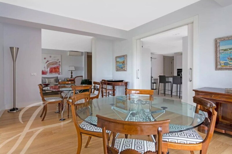 Wonderful apartment renovated in 2021 with excellent qualities, in a representative building in the area of Nueva Españ a, and where there is only one floor per floor. It is a 6º floor of 385m² with common areas and 325m² own floor, facing south-east-west. A spacious hall, with a guest toilet, welcomes us open to the splendid living room, with three areas, over 70m² with magnificent views and great luminosity due to its large windows and its south orientation. The large separate dining room of over 25m² connected by sliding doors with a wonderful kitchen, large size, with a large central island and a lot of cabinets for storage, from the kitchen we can access a closed terrace as a gallery-laundry room, and also to the service bedroom with bathroom. The rest area consists of three large bedrooms all with en suite bathrooms, one of them with access to a small terrace, and where highlights the spacious master bedroom area of more than 50m² with office area, dressing room and a large outdoor bathroom. It emphasizes its great luminosity since practically all the exterior facade are large windows that bring light, warmth and great views. Completely renovated without skimping qualities, Cortizo tilt and turn windows, solid oak flooring and porcelain stoneware, Miele and Neff appliances, kitchen furnished by Estudio Verdi kitchens, etc.... In short, a sublime apartment for size, qualities, brightness and views, without neighbors on the same floor, exclusive and very representative. Chamartín is home to large national and multinational companies, also has important sites of interest such as the National Auditorium of Music, the Museum of Natural Sciences, the Museum of the City, the Berlin Park, the Canal de Isabel II Park, the Courts of the Plaza de Castilla and the Santiago Bernabéu Stadium.