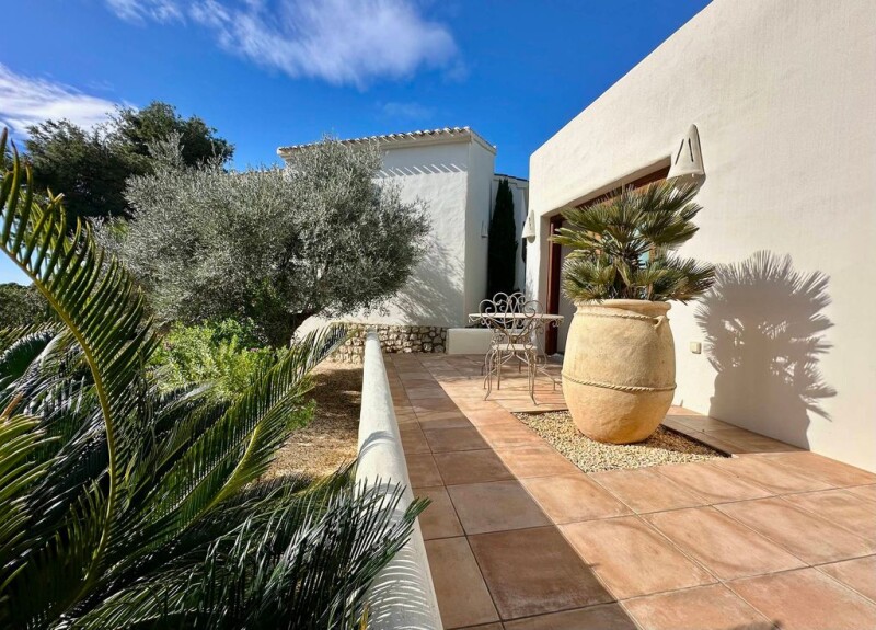 Located in a sought-after area close to the beaches of La Granadella and Ambolo, this villa is set on a 1025 m² plot that faces due south, offering superb sea views. The property comprises a main house and a guest house, surrounded by an easy-to-maintain Mediterranean garden with palm trees, fruit trees and a pétanque court. Several terraces make the most of the sunny climate, including a large main terrace with an infinity pool and barbecue area. The entrance is via an automatic gate leading to a wide driveway with several parking spaces and an enclosed garage. Inside, the villa offers a cosy living room with fireplace, a separate kitchen with utility room, and three double bedrooms, each with en suite bathroom. The detached 67 m² guest house offers a living area with kitchenette, bedroom, bathroom and private terrace. The beaches of Granadella and Ambolo can be reached in just a few minutes by car, and the Granadella nature park, perfect for hiking, is close by. Interior photos available on request.