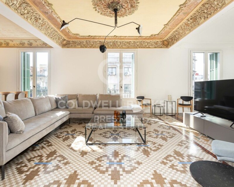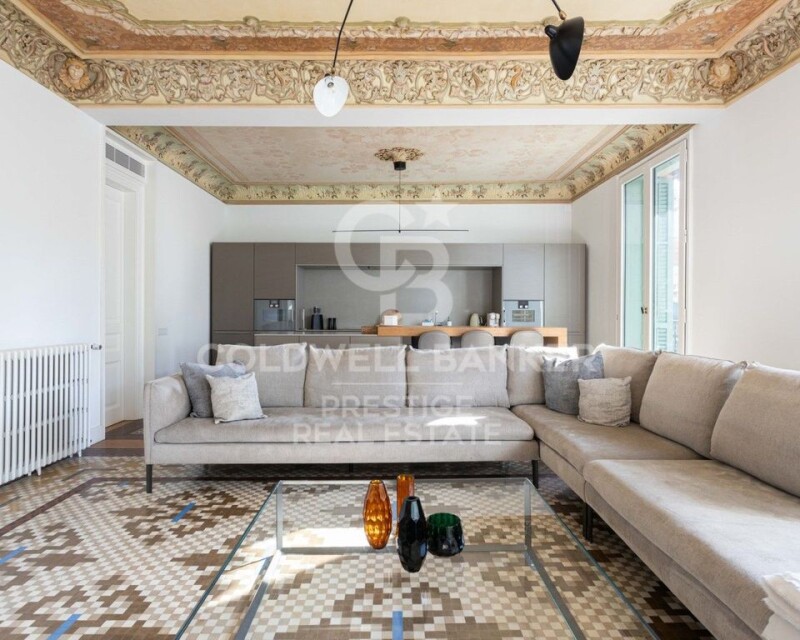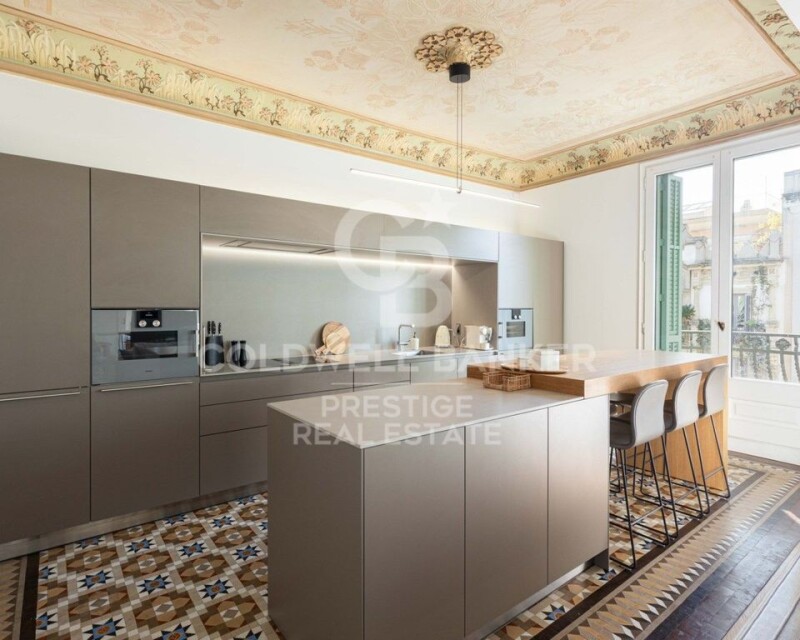 For sale magnificent duplex penthouse with terrace in one of the most iconic modernist buildings in Barcelona: Casa Bures. The duplex flat maintains original elements of modernist architecture, a unique piece. Every corner of the flat reflects the charm of the modernist era, from the meticulously restored mosaic floors to the murals on the ceiling. The fusion of historical elegance and contemporary finishes creates a unique space that exemplifies the harmony between classic and modern 21st century styles. The flat consists of four spacious bedrooms, a living room, a kitchen and a dining room. A distinctive feature is the redesigned bedroom turret, which juts out from the facade. With high ceilings and a high-end design, this rounded space is a true example of luxury. It also has a terrace on the fourth floor and balconies on the third floor, offering ample space for entertaining and relaxation. The surface area of 330m2 includes part of the square metres of common elements of the building. Casa Bures is more than just a building, it is an icon of Catalan Modernisme, built between 1900 and 1905 by some of the most important craftsmen of the time. Its location in Barcelona's Eixample district, one of the city's most emblematic areas in terms of modernist architecture, makes it a privileged place to live. The restoration carried out between 2015 and 2017 has preserved all the catalogued decorative details, maintaining the essence and authenticity of this magnificent building. The communal areas of the Casa Bures building add an extra touch of luxury and exclusivity to this exceptional property. With access to complete communal areas, including a heated outdoor swimming pool on the upper terrace, an indoor pool, gymnasium, entertainment room, home cinema and work area on the ground floor, residents can enjoy a variety of leisure and relaxation options without leaving home. In addition, concierge and security services are provided 24 hours a day, 365 days a year to ensure the peace of mind and security of all residents. Do not hesitate to contact us for more information or to arrange a visit!.