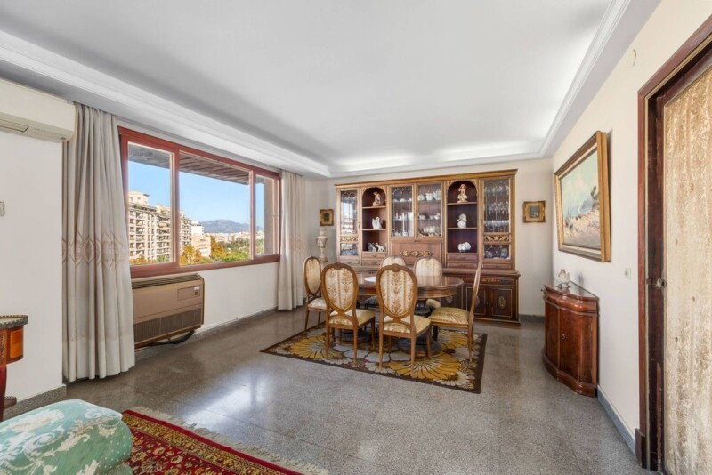 Central stately apartment for renovation on Paseo Mallorca, with unobstructed views of the city and the Cathedral, very close to the shops on Jaime III and famous restaurants in the area, a few minutes from Paseo del Borne and Paseo Marítimo. This bright apartment needs renovation, it has approximately 190 m2 built with five bedrooms and three bathrooms. Spacious living room with fireplace, kitchen with pantry and service room. Extras such as large balconies, elevator, possibility of purchasing parking.