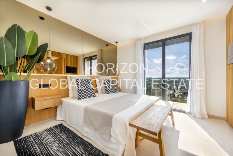 Luxury penthouse in exclusive residential complex in Santa Ponsa This exclusive penthouse is located in the picturesque village of Santa Ponsa in Spain, one of the most sought-after residential addresses on the island of Mallorca. With a zip code of 07183, the apartment is in a strategic location that offers both tranquillity and excellent accessibility. The center is only 15.98 km away, which means that you can reach the vibrant heart of the region in no time. Shopping facilities for daily needs can be found just 1.99 km away, so errands can be run quickly and easily. The transport connections also leave nothing to be desired. The nearest highway is just 0.76 km away, ensuring smooth connections to other parts of the island. In addition, the nearest bus stop is just 1.21 km away, making local public transport easily accessible. Families with children benefit from the proximity to educational facilities. A kindergarten is just 1.42 km away, while the elementary school is 1.17 km away. These short distances make everyday life pleasant and stress-free. Experience the perfect combination of exclusive living and optimal infrastructure, nestled in the beautiful surroundings of Santa Ponsa. For sale is a luxurious penthouse in picturesque Santa Ponsa, which will be ready for occupation from 2024 and offers you an exceptional living experience. The exclusive living space of approx. 154 m² extends over three floors and comprises five rooms, including four spacious bedrooms and three stylishly appointed bathrooms. From the southwest-facing terrace, you can enjoy breathtaking sea views, inviting you to spend relaxing hours in a private atmosphere. This exclusive penthouse is characterized by its high-quality construction and state-of-the-art fittings. The property boasts luxurious marble floors and elegant wall coverings in Duero Gray marble or similar porcelain stoneware. Underfloor heating and innovative heating and air conditioning systems, including DAIKIN aerothermal air conditioning, ensure a comfortable living climate all year round. Inside, you will find a stylish kitchen with MIELE appliances and natural stone worktops, a cozy fireplace and modern household and automation systems. The furnishings continue with exclusive Duravit sanitary facilities and Grohe fittings that meet the highest standards of comfort and design. Special highlights of the residential complex include the large infinity pool with indoor lighting, an inviting sauna and spacious communal areas with sun terraces and well-tended gardens. The penthouse also offers a private pool and a community pool. Security and comfort are ensured by a covered underground garage with automatic gate, modern elevators, fire alarm system and a KNX ZENNIO home automation system. The entire complex complies with the highest energy efficiency class and is therefore particularly environmentally friendly. Experience the perfect combination of luxury, comfort and modern architecture in this impressive penthouse in Santa Ponsa - an investment in quality of life and style. Interior and communal areas: - Spacious communal areas with sun terraces - Well-kept gardens with automatic irrigation system - Large infinity pool (gunite concrete, gresite or porcelain stoneware) with interior lighting - Elevators (OTIS Gen360 model) with the latest digital technology Apartments: - High-quality marble floors in all living areas - Underfloor heating (cross-linked polyethylene pipes, EPS panels) - Wall coverings made of Duero Gray marble or similar porcelain stoneware - Smooth, washable plastic paint in interior rooms - High-quality interior doors made of paintable wood - Wardrobes with hinged doors, shelves and clothes rail - Aluminum windows (METRA brand) with thermal break and double glazing - Kitchen with MIELE appliances (induction hob, extractor hood, dishwasher, fridge, oven, microwave) - Worktops and tops in natural stone (Zarci Grey marble or similar porcelain stoneware) - Fossil stone wall painting in the kitchen Sanitary facilities: - Duravit WC (Starck III model or similar) - Duravit washbasins (Vero model or similar) - Grohe single-lever mixer taps and shower fittings Heating and air conditioning systems: - Air conditioning with aerothermal system (DAIKIN brand or similar) - Energy-efficient heat recovery through Simple Flow System - KNX ZENNIO home automation system (control of air conditioning, heating, blinds, lighting) Outdoor area and parking facilities: - Walk-on flat roof with double-layer insulation and Duero Gray marble flooring - Private outdoor terraces with marble tiles in Duero gray or similar porcelain - Covered underground garage with ramp and automatic entrance gate - Installed lighting, fire alarm system and fire extinguisher Additional features: - Sauna for communal use - Highest energy efficiency class ("green house") - Preparation for Dolby Surround Audio installation - Video intercom system (Fermax brand or similar).