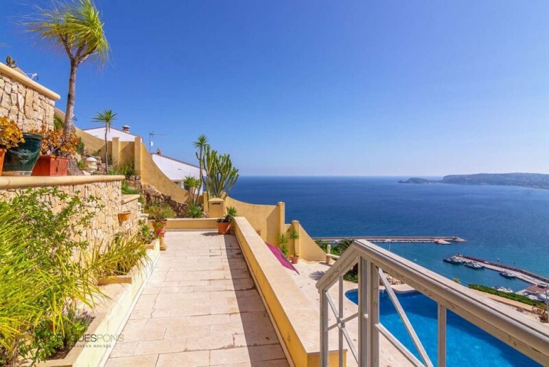 Sky blue, turquoise blue, navy blue? Mediterranean Blue! From MORAGUESPONS Mediterranean Houses we present you Azul Mediterraneo. A luxury villa in Jávea, Costa Blanca. Located in the Cuesta de San Antonio, with wonderful views over the bay of Jávea, the fishing port and the Montgó. Only a few metres separate you from Duanes del Mar, the fishing quarter of old fishermen's houses, where today you have all the services you need. A real luxury in every sense of the word. Staying here is a haven of peace, as you can enjoy the blue sea from practically every room. Three levels where you can disconnect, listen to music, read a book or simply lose yourself in your own home, alone or in company. Its main floor with high ceilings, rooms open to the sea and its kitchen, dining room make a practically diaphanous space with a fresh Mediterranean touch. But wait, if you go down a few steps, in the bedroom area, you will discover your particular spiritual retreat, yes, the one where every sunrise, every first ray of sunshine, will make you forget what you don't need to think about. The house is built with the most luxurious materials. Marble is present in all the rooms, even in all the exteriors. Get ready and discover with this Mediterranean blue, a luxury villa with stunning sea views in Jávea. Don't wait any longer, make an appointment to visit.