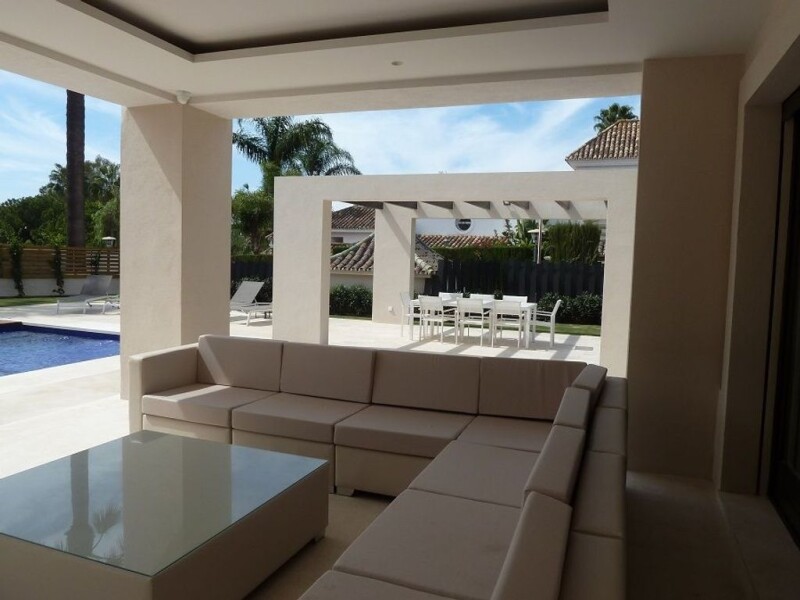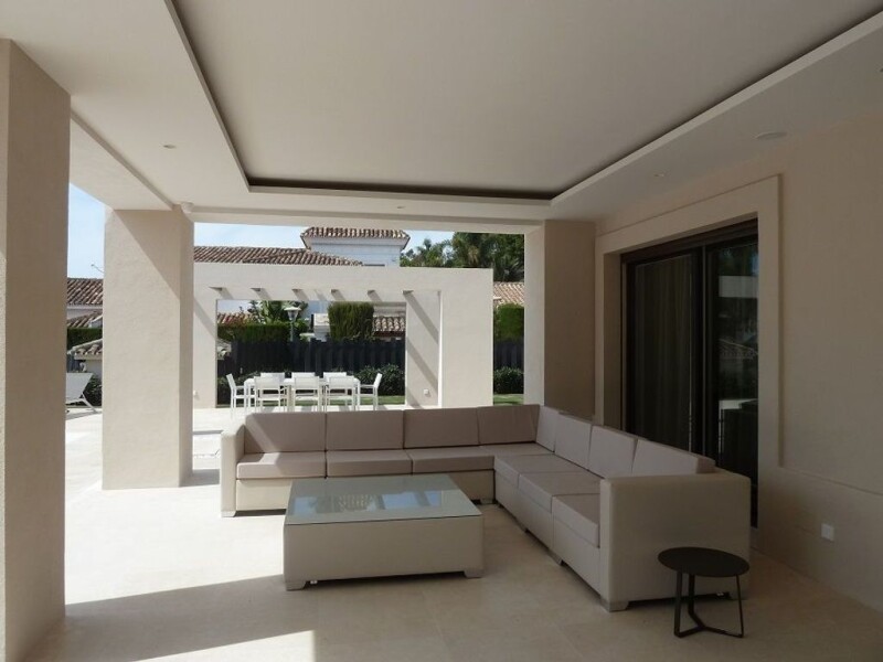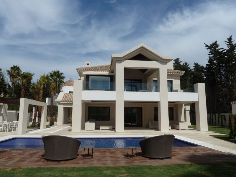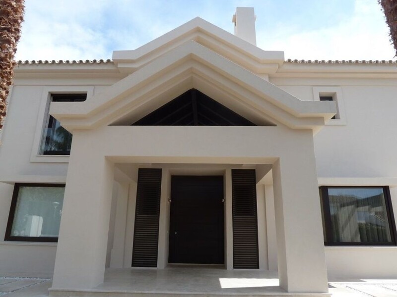 Villa, Marbella Club – , in the heart of the exclusive golden mile, granting the privilege of living in a private complex with 24-hour security, security cameras and specialised personnel. The combination of stylish elegance and contemporary style have produced an outstanding villa. Superb views across the garden and pool to the Mediterranean. An extensive hall welcomes you to this charming villa with 1,000 m2 of ample interior spaces. Symmetrical spaces such as the stairway from the vestibule and a deep projection from the hall towards the garden, offer a geometric and harmonious result. Open plan living and dinning room, modern fully fitted kitchen with breakfast corner and guest room en suite all leading to a large covered terrace. Large spaces full of light On the first floor you find the master bedroom ensuite oriented to the south with spectacular views of the swimming pool, gardens and the sea. A space full of autonomy and privacy with a cosy salon, large 2 walk-in wardrobes and its own terrace. The villa has six spacious bedrooms and six bathrooms ensuite. Customized all the furnitures and finishes, truly allowing the space to become personal, sophisticated & special. All in the use of light, colour, balance and shapes allow this space to become glamorous, cosy and comfortable all at the same time Spa and solarium area On the lower level is the spa area with a large indoor pool, leisure room, gym and sauna, games room with bar and a further 2 guest bedrooms and full bathroom. The solarium has a Jacuzzi and wooden built-in sun loungers with enough space for a large sitting area with 360º degree breathtaking views.