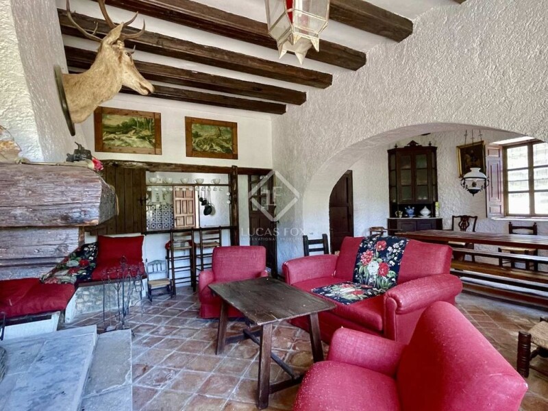 La Zafra, a unique hunting estate with 150 years of history, located on the plot of 372 hectares including Sierra de las Pedrizas. The property is unique for its privacy and wild nature, there are various trekking roots on the mountains, one of the peaks offers a 360-degree panoramic view of the towns bordering the province of Alicante, and from the top of the mountain you can see the Mediterranean Sea. The areas of the estate are home to various types of vegetation like pine, olive, almond trees and Mediterranean aromatic plants. The land is classified as protected undeveloped land. There are 2 shares of water from the Percamp irrigation community, which they estimate at 400 cubic metres per year, but which is expandable. Currently, it is a private hunting reserve, which is part of a large nature reserve with an area of 750 hectares. The reserve is also used for hunting small game. It has a spacious manor house in the centre of an estate with an area of 811 square metres. This place is ideal for those who want to find themselves in a private space surrounded by landscapes and open spaces. Here, your imagination can run wild to create a country hotel, stables, a mini winery with grape harvests of Moscatel, or any other leisure activity for a healthy lifestyle. The homestead's tiled roof has recently been renovated for proper maintenance. It has a masonry load-bearing wall structure that gives it stability, and the floors are made of renewed wooden beams. The interior is made in a rustic style, using natural materials such as wood and stone. The main house has various renovation opportunities depending on future plans for this property. Currently, the building of 2 floors is closed rectangular shape with a courtyard in the middle and is divided into 2 continuous spaces, communicating with each other on both floors. The living part of which has 7 bedrooms, 3 bathrooms, 2 kitchens, 1 spacious hunting-style living room with fireplace and a staircase that connects the 2 floors. The second part of the house is currently not used, offering the opportunity to create a space out of it at your discretion. This truly unique property is perfect for someone who is looking a getaway place with total privacy surrounded by virgin nature ad mountains just 30 km away from Alicante. This region is famous for Moscatel grapes ad almond fields. Please contact us for more information or to visit the property.