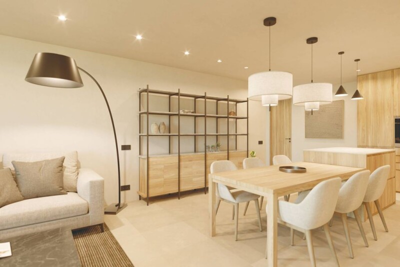 New development, meticulously designed to offer a relaxing living experience in an area that is gaining popularity due to its proximity to the beach, trendy restaurants, and the port. Cala Major is located within walking distance of the city of Palma and is easily accessible by car, public transportation, or a 20-minute bike ride along the promenade and ports. Other parts of the island, such as Calviá, are also well connected. For this construction, consisting of 6 residences, materials have been carefully selected according to their quality and energy efficiency. All apartments have three bedrooms and a fully equipped open kitchen with high-end appliances, integrated into the living area to create a spacious and bright environment. The complex has an individual aerothermal system that provides underfloor heating and air conditioning (hot/cold). Each residence has a parking space and a storage room, with the possibility of acquiring additional parking spaces. Also, it is equipped with a video intercom and, thanks to home automation technology, every space in the home can be managed independently to ensure maximum comfort. Residents can also enjoy an elevator and common areas, including a garden and a communal pool, perfect for enjoying the weather in an exclusive environment. Apartment €1,350,000 Located on the first floor, this apartment combines comfort, contemporary design, and modern style. It has a private porch and garage, offering an ideal space for those seeking a spacious and functional home in a quiet environment. The 121.4 m² apartment has 3 bedrooms and 2 bathrooms, with spectacular sea views. Penthouse €2,100,000. Located on the second floor and rooftop, it has a large uncovered terrace of 66.70 m2 and a private rooftop pool, offering panoramic views and a perfect space to relax outdoors. The property has a surface area of 127.8 m2, 3 bedrooms, and 2 bathrooms and includes a private porch and garage, providing comfort and privacy for those seeking a modern lifestyle. Penthouse €2,250,000. Located on the second floor, it has access to a private rooftop of 137.80 m2 that includes an uncovered terrace and pool. This penthouse offers panoramic views, ideal for enjoying the outdoors and relaxing. The property has a private porch and garage, providing maximum comfort and privacy. With a surface area of 128 m2, 3 bedrooms, and 2 bathrooms, offering a perfect space for a comfortable and elegant life. The elevator provides direct access to the residence. Additionally, the property enjoys a southwest orientation, providing excellent brightness. We invite you to personally discover this magnificent promotion, a unique opportunity in the market for those seeking exclusivity and luxury in their daily lives. Construction began and will be completed in 2026. Contact us to learn about the technical specifications.