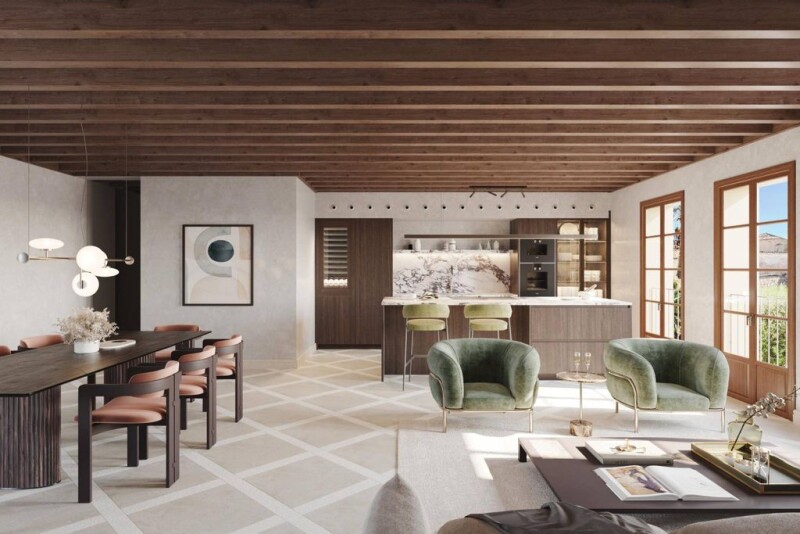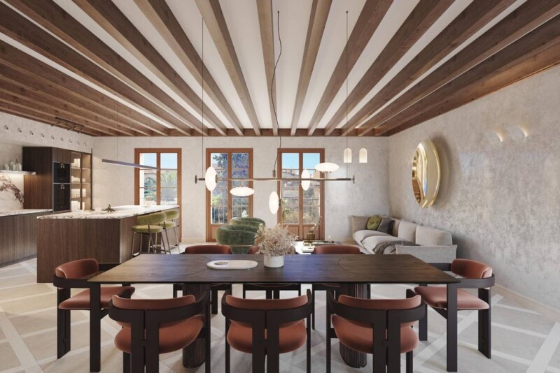 Penthouse in a noble building from the 16th century in the old town, in the historic heart of Palma, close to shops and restaurants. The project is led by a prestigious team and represents an exquisite combination of luxury and sophistication. The living area will be about 388 m2, of which 320 m2 will be useful and there will be a terrace of 68 m2 with panoramic views of the city, sea and the cathedral. The apartment consists of three large bedrooms and three bathrooms, a guest toilet, a large designer kitchen open to a bright living room. Additional services are offered such as: underfloor heating, air conditioning, elevator, garage. Mallorcan elements such as wooden beams, stone floors and much more stand out. The works will be completed in the summer of 2026.
