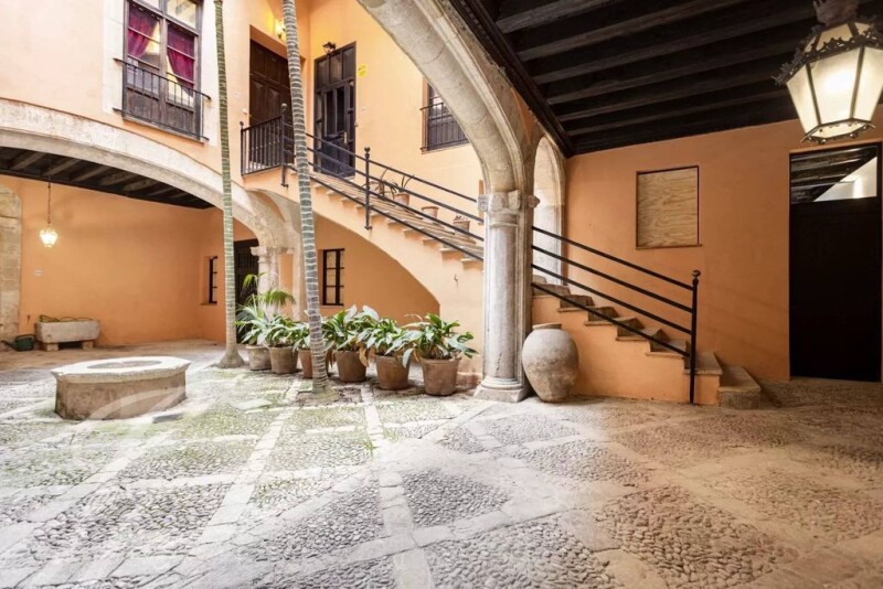 A Noble floor apartment to be refurbished in one of the most emblematic streets of the Old Town of Palma de Mallorca. This property offers a unique opportunity for those looking for a property with the charm and characteristics of historic mansions. The property is situated in a building with a beautiful patio and an original stone staircase which leads to the first-floor duplex property. The interior boasts very high ceilings with spectacular wooden molded ceilings, floor-to-ceiling windows, and three private terraces, perfect for enjoying al fresco dining. Furthermore, it offers a lift and private parking (for a small car), which adds to the convenience of this exclusive property. This is an exceptional opportunity to acquire a historic property in the old town of Palma, ideal for those who wish to personalize their home in one of the most sought-after areas of the city. One of the best-preserved old towns in Spain featuring the most amazing Gothic architecture in the Mediterranean surrounded by hundreds of narrow streets, excellent shopping, great restaurants, art galleries, museums, and amazing ancient passages leading to important historic monuments, landmark buildings, and the jewel of the crown: Catedral Santa Maria, La Seu. It is very popular for the nightlife and offers very trendy places to visit, like Passeig del Born, Avenida de Jaume III, Passeig de la Rambla, La Llonja and some of the most visited “Plazas”, such as Plaza Santa Eulalia, Plaza Cort, Plaza Mercat and Plaza Mayor among others. Casco Antiguo is one of the most desirable districts for property investment. Many of them have been renovated over the past few years and turned into luxury apartments, fitted with all the modern amenities.