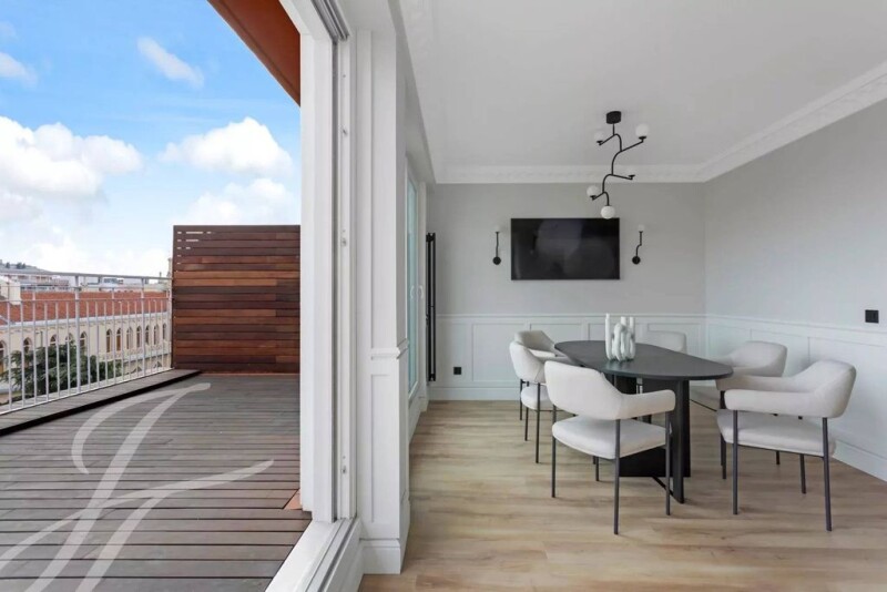 An exclusive newly renovated penthouse that stands out for the excellent quality of its materials and the magnificent terrace with panoramic views. Located on the sixth floor of a modern building, the main quality of this property is the abundance of natural light in all its rooms. The exterior area is occupied by the large living/dining room with open kitchen equipped with high-end appliances. A large sliding window allows access to the large terrace which enjoys East orientation and unbeatable panoramic views over the Colegio de Nuestra Señora del Pilar. It has three large bedrooms. Two of them have en suite bathrooms and the third uses a bathroom located just in front that serves as a guest toilet. There is also a laundry area and a storage room. Equipped with ducted air conditioning, central heating and electric shutters. A luxury penthouse in the Recoletos neighborhood.