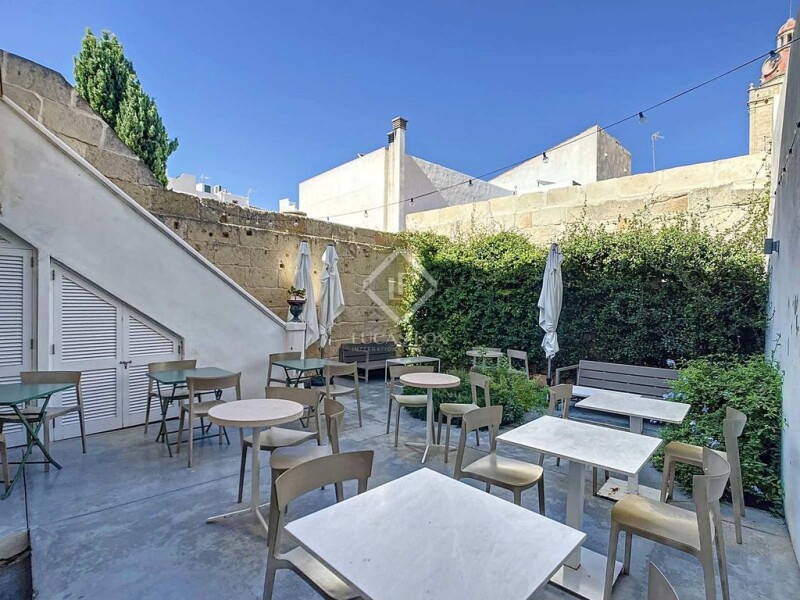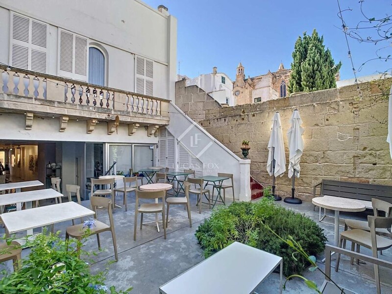 Located in a 200-year-old palace, a building with modern and eco-friendly architecture and design has been created with top quality materials, finishes and facilities, located in the most exclusive area of the monumental historic centre of Ciutadella de Menorca. The 345 m² building is distributed over three floors plus a basement. The ground floor of 130 m², with its current layout, is conceived as a large open space and very bright, for use as a reception area for clients, with a separate entrance for access to bedrooms on upper floors and a multipurpose space for an art gallery and cafeteria-bar with exit to patio, space easily convertible into a living area and kitchen of the house with access to a 55 m² rear patio with the possibility of building a pool. Via the original stone staircase or by the lift, we access the first floor, which has three deluxe rooms from 27 m² to 36 m² each, with private bathrooms, two of them with a balcony and the third with a private patio of 9 m². The second floor of the building offers two deluxe double rooms with private bathrooms. From this floor we access the upper solarium terrace with fantastic views of the Cathedral and the sunset. All the rooms have a special and different design in a contemporary and minimalist style, combining materials such as terrazzo, polished cement, glass, steel, marble and ceramics, bluetooth audio systems and smart TV to enjoy a luxurious stay. Lastly, in the basement with a sandstone vault, it has a bathroom, machinery room, with the possibility of converting it into a fitness area, sauna, jacuzzi area or wine cellar. An exceptional property with unique characteristics due to its design, current condition and versatility, ideal both for residential use and for tourist rentals, in perfect working order, fully furnished and equipped, ready to move into. Contact us for more information or to arrange a visit. The information described here is merely informative and is assumed to be accurate, however, the above data may be subject to errors, price changes or changes in conditions without prior notice.