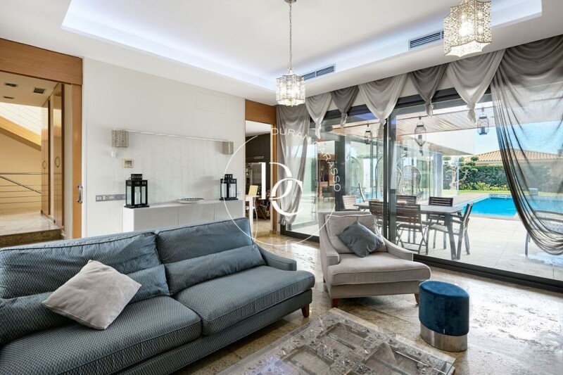 Spectacular Detached House for Sale, designed by an architect for his own use, featuring an impeccable layout, spacious rooms, and exceptional brightness thanks to its south-facing orientation and large windows. The house has two floors. In the basement, there is a spacious garage with a double entrance, accommodating two cars. Its ample space allows for a gym area, as well as a multipurpose space perfect for storage or a play area, along with a small storage room. For added convenience, a freight elevator connects directly to the kitchen, making it easier to transport groceries, luggage, or other heavy items. On the main floor, the house offers an elegant and functional layout. The standout feature is the large, bright living room, with windows that provide direct access to the private garden, where you'll find a saltwater swimming pool and a barbecue area, perfect for enjoying the outdoors. The independent, modern, and fully paneled kitchen is equipped with a central table, along with an osmosis system and a water softener to ensure the best water quality. Next to the main living room, there is a second lounge with a fireplace, decorated in a cozy style, which provides access to two bedrooms and a full bathroom. On the upper floor, the house features four bedrooms and three full bathrooms. The master bedroom is a true luxury: a spacious room with access to a large terrace overlooking the sea, a generous walk-in closet, and a private bathroom with a jacuzzi and shower. The remaining bedrooms have large built-in wardrobes, ensuring optimal storage space. Additionally, the house is equipped with automatic shutters, heating and air conditioning, a well-organized electrical installation, and a thoughtfully designed layout to maximize comfort and functionality. Located in a peaceful and well-connected area, this house is ideal for those seeking space, natural light, and privacy without compromising on modern conveniences. Don’t miss this opportunity! Contact us for more information or to schedule a visit.