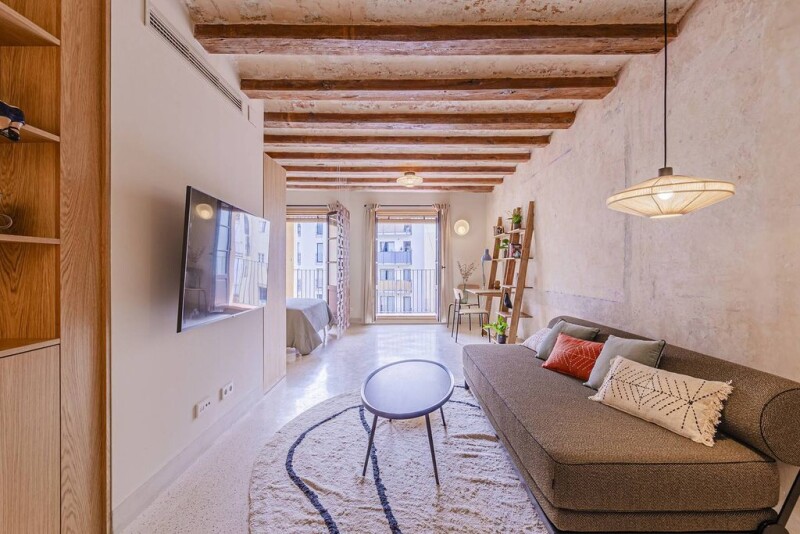 Located on the third floor of the elegant Lancaster-Lofts building, this loft-style property offers an impeccable combination of light and contemporary design. With a constructed area of 54 m², the apartment presents an open and cozy atmosphere, ideal for those looking for a modern and functional home in Barcelona's historic Raval neighborhood. The property features one bedroom and one bathroom, designed with attention to detail to maximize comfort and style. The southwest orientation ensures an abundance of natural light, creating a warm and sunny atmosphere throughout the day. High ceilings and unobstructed views enhance the feeling of spaciousness, while the open kitchen, partially separated from the main area, ensures a harmonious and practical flow. The apartment includes a private 7 m² balcony, perfect for relaxing and enjoying the views of the building's interior garden. Part of the Sunny Loft collection, this residence is distinguished by its bright and well-distributed spaces, with a design that combines functionality and elegance. This loft offers an exceptional opportunity to reside in a setting that fuses historic charm with modern comfort. For more information or to arrange a visit, please do not hesitate to contact us.