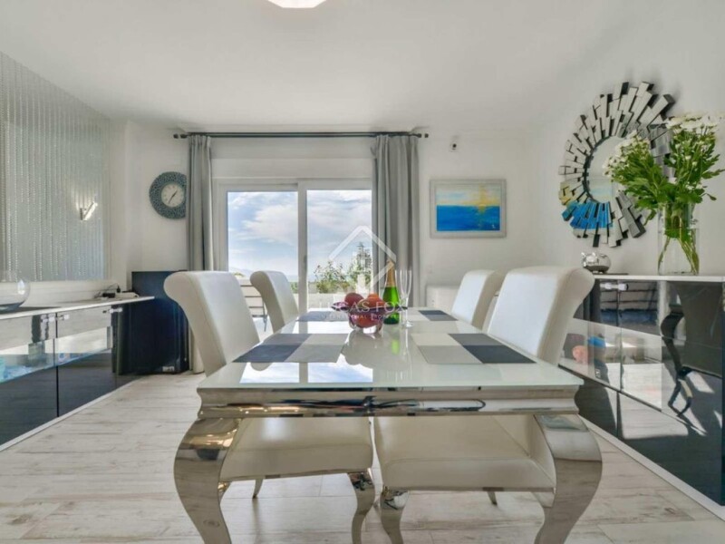 Nestled within the prestigious Altea Hills on the Costa Blanca, this charming traditional Spanish-style villa embodies the essence of Mediterranean living. Spanning 200 square metres and originally built in 1996, the property has undergone a complete refurbishment, blending timeless charm with modern amenities. Situated in a secure gated community, the home offers panoramic sea views, providing a serene retreat for its fortunate residents. Upon entering, you are welcomed by a warm and inviting atmosphere. The heart of the home is a spacious living area, complete with a cozy fireplace, perfect for gatherings or quiet evenings. Adjacent to the living space is a closed terrace, thoughtfully converted into a home office, offering a peaceful workspace with breathtaking views of the sea. The open-plan dining area and kitchen are designed for both practicality and entertainment. Modern appliances and a seamless layout allow conversations to flow effortlessly between the kitchen and dining area, making it ideal for both family meals and social gatherings. A guest toilet and dedicated laundry room are conveniently located on this level, adding to the home's functionality. Descending to the lower level, you'll find a tranquil master bedroom with an ensuite bathroom, providing a private retreat to unwind. Two additional spacious bedrooms offer comfort for family or guests. Outside, a large terrace offers stunning views of the Mediterranean, where you can enjoy the sea breeze or take a dip in the private pool. The outdoor space is perfect for relaxation, with ample room for sunbathing or enjoying meals al fresco. For families with children, a dedicated playground adds an extra touch of convenience and safety. Located in the exclusive Altea Hills gated community, this villa offers not only luxurious living but also security and privacy. The combination of traditional Spanish architecture, modern comforts, and panoramic sea views makes it an exceptional place to call home and a valuable investment opportunity.