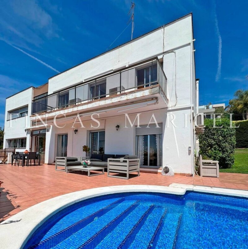 This wonderful residence is located in the Vallpineda urbanization, one of the most prominent urbanizations in Sitges, with an exceptional location that provides access to a wide range of services. In addition, it is located a few steps from the prestigious British school BSB. The chalet is very bright and is distributed over two floors. * On the main floor, there is a spacious and open-plan living-dining room with access to the terraces, a fully equipped kitchen, a separate laundry area, a bedroom, a guest bathroom and a cellar. * On the upper floor, we find the night area, 4 double bedrooms and one single, all of them exterior and with built-in wardrobes, 2 full bathrooms (one en suite) The layout of this chalet is designed in such a way as to make the most of the panoramic views and abundant light, creating a serene and welcoming atmosphere at all times. Outside the house, you can enjoy a swimming pool and two clearly differentiated areas, which include a dining area with a barbecue area and a "chill-out" relaxation space to make the most of the Mediterranean atmosphere with spectacular views. The entire urbanization has a private security service, guaranteeing the tranquility of its residents. ** Sitges is a white town, of old fishermen, on the shores of the Mediterranean. 30 kilometers from Barcelona airport, accessible by highway, today it is a tourist center with international projection. Pioneer of tourism since the 20s of the 20th century. Tolerant and hospitable. It has a marina and 18-hole golf course. It enjoys an exceptional climate, mild in winter and warm in summer. Its 4 kilometers of golden beaches carry a blue flag for the quality of its waters. Modernist mansions and luxury hotels grow on its Promenade. Sitges offers an annual calendar of attractive events: cultural such as the Fantastic Film Festival and the Terramar Music Festival; recreational such as the Carnival, the Antique Car Rally or the Harvest Festival, traditional such as the Festa Major, gastronomic, sporting and social. Sitges is the pearl of the Mediterranean.[IW].