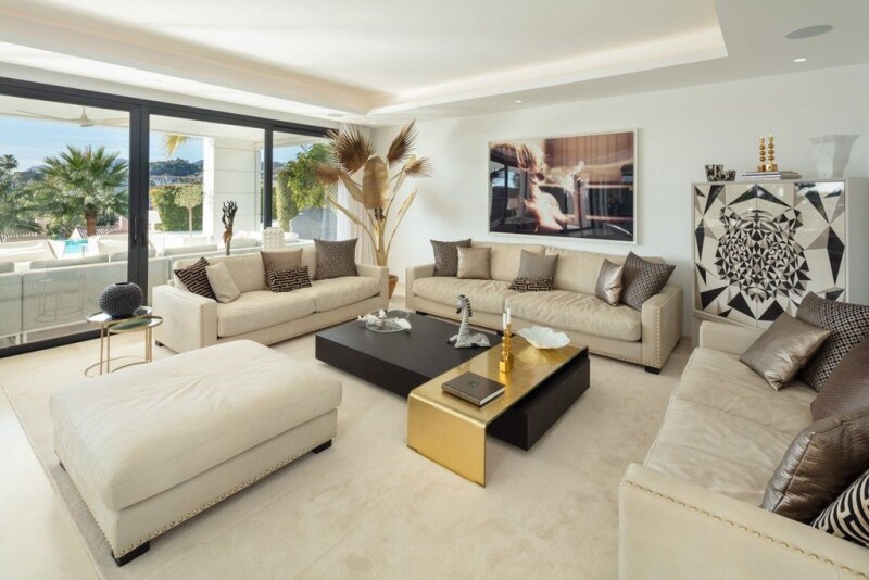 Contemporary Luxury Villa in the Heart of Marbella’s Golf Valley This exceptional villa is a modern masterpiece, perfectly positioned in the exclusive Golf Valley of Nueva Andalucía. Offering breathtaking panoramic views of the sea, golf courses, and Marbella’s iconic La Concha mountain, this property combines cutting-edge design with a prime location, just minutes from Puerto Banús and its luxury amenities. The villa is set on a large private plot and features a seamless open-plan layout, designed to maximize natural light and enhance the connection between indoor and outdoor living. The main living area flows effortlessly onto expansive terraces, a beautifully landscaped garden, and a stunning infinity pool, making it the perfect setting for entertaining or relaxation. The state-of-the-art kitchen is fitted with high-end appliances, while the home also boasts a wine cellar, cinema room, and fitness area for unparalleled luxury. With five en-suite bedrooms, including a spectacular master suite with panoramic views and a spa-like bathroom, this villa is ideal for families or hosting guests. Located in one of Marbella’s most sought-after areas, close to world-class golf courses, restaurants, and international schools, this villa offers the ultimate combination of modern sophistication and lifestyle convenience.