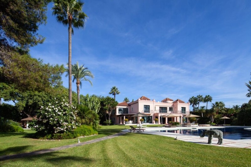 Amazing 8 Bedroom Villa with Astonishing Design in Estepona The location This amazing villa is located in Estepona in the Paraiso Barronal urbanization. Paraiso Barronal is located west of Marbella and only 11 kilometers from Puerto Banus, on the exit of Cancelada. It is 6 minutes away from Guadalmina beach, San Pedro de Alcantara beach and Cortijo Blanco beach. The same distance to Guadalmina Golf and El Paraiso Golf. 40 minutes away from Gibraltar and Malaga airports. All distances refer to driving. The property Casa Solymar is a very impressive residence constructed on a palatial level, totally reformed around 8 years ago, with many quality and luxury fittings. Its main driveway is the prelude to what lies inside and within, considered as one of the top 20 Best Houses in Marbella. The Property is built on a plot of 7.415,04 m2 and it has a total built area of 1.069, 57 m2 and is composed of 8 bedrooms and 8 full bathrooms and a caretaker house with additional two bedrooms and bathroom. The swimming pool is 25 x 10 m. Cascade is an integral part of the manicured and landscaped well lighted gardens with two water wells, mature vegetation and fruit trees. The African Lodge built specially with imported materials and craftsmen and the sophisticated al fresco designer house, the work of renowned European contemporary designers, complemented with the exceptional barbeque and outdoor bar make this residence a perfect home for family life and entertaining. Enclosed garage for 4 vehicles. AC wine cellar with capacity for over 500 bottles. There is also an all season tennis court in artificial grass with automatic irrigation system and fully lighted. Main Floor A huge and beautiful living room area opens up. It has a separate TV/cinema room right next to it. A huge dining area with a big table. A separate kitchen that is fully furnished and equipped. A huge bedroom with an en-suite bathroom. Top Floor This floor is dedicated almost fully to the master bedroom. It has a huge and gracious master bedroom with a walk in dressing room and a living room area. It has a huge bathroom with everything anyone could dream of and a private terrace only for this room. 2 more bedrooms with private bathrooms and dressing areas. A huge fitness room where there is also a sauna installed. An office room that has a shared bathroom with the fitness room.
