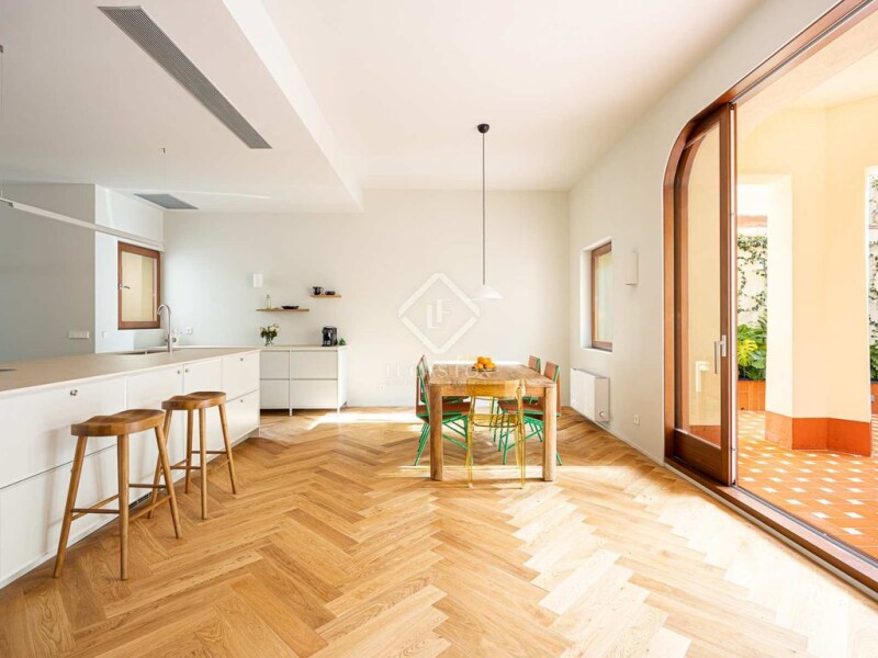 Stunning newly renovated villa from the 1930s available for sale in Montjuic, a quiet residential neighbourhood in the city. This one-of-a-kind property has been renovated, preserving its essence, and it is the epitome of luxury living in Barcelona. Spanning a total of 750 m² of indoor and outdoor spaces, this property has four different levels connected by a lift and two staircases. Its curated interior design brings back the art deco magic and offers comfortable and functional luxury living. On the ground floor we find a garage for 5 cars and a studio with a kitchen, sauna and a bathroom. This space is ideal for entrepreneurs or to be used as a guest area. It could be a photography studio, showroom, office space, playroom, guest loft or whatever suits your particular lifestyle best. It is a versatile space with a lot of potential. On the first floor we find the day area composed of a guest toilet, living room, dining room, kitchen porched patio and terrace. The living room is extremely spacious and bright, featuring an office space. The kitchen has been custom built and has a magnificent central island with abundant storage space and a bar area. There is a cellar and reading corner which complete the day area. Thanks to the Mediterranean weather, the outdoor space can be enjoyed all year around. There are three terraces at different levels, boasting different orientations and amazing city views. On the second floor we find three double bedrooms and three bathrooms, two of which are en-suite. All the bedrooms are extremely spacious, exterior and feature custom-built wardrobes and wooden flooring. The bathrooms are stunning, they all have tiles imported from Italy in different colours. On the top floor we find a multipurpose space with a bathroom. It could be used as a studio, office, sun room, library or an additional suite. It is private and separate from the rest of bedrooms on level 2. Furthermore, it has an en-suite bathroom and leads out to two different rooftop terraces with a porched outdoor dining area and kitchenette. Please contact us to arrange a viewing.