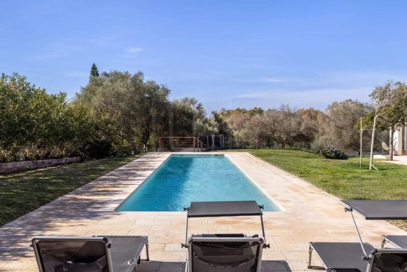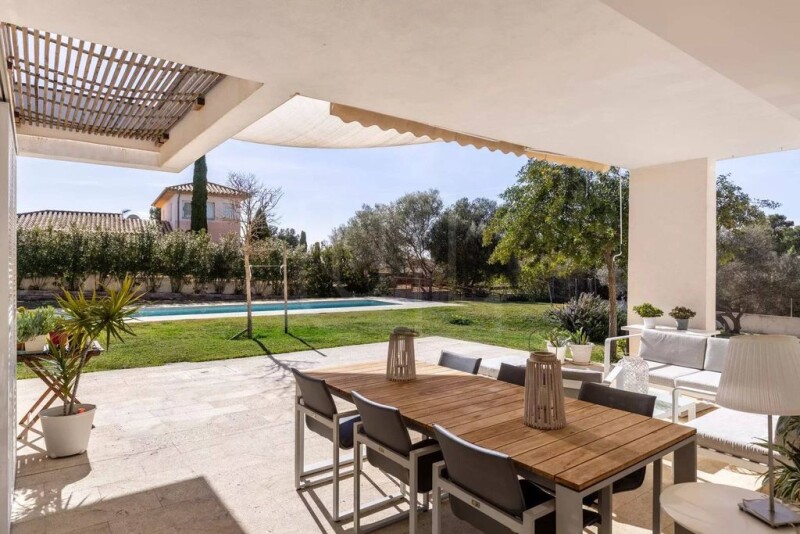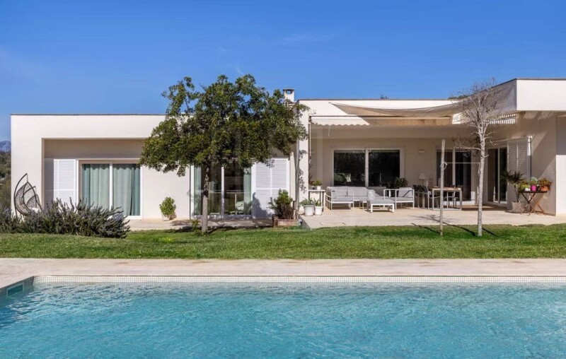 A stunning single level villa located near the picturesque village of Portol, just a short drive from Palma. The 240 sq.m exquisite villa embraces the Mediterranean lifestyle, perfectly designed for serene and luxurious living. It offers a seamless blend of comfort and style on one level and the bright interior comprises an open plan living / dining room with a cosy wood fireplace, modern kitchen, laundry room, 5 bedrooms and 3 bathrooms. Other features include air conditioning, underfloor heating, solar energy and parking space. Outside is the south facing beautifully landscaped Mediterranean garden with 150 sq.m of terraces and saltwater swimming pool.