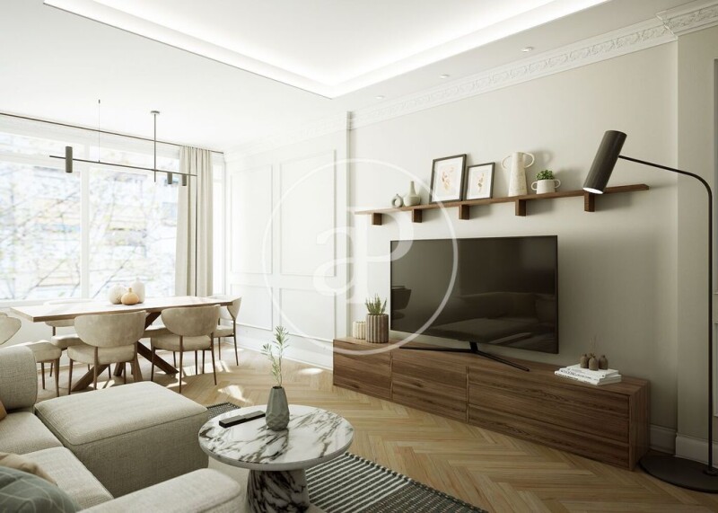 We present this beautiful flat of 193sqm, exterior, with a strategic location in Alonso Cano street, in the neighbourhood of Ríos Rosas, Chamberí, which is delivered fully refurbished and furnished, ready to move into. It is currently in the process of being refurbished, so the images published are merely indicative of a project by the same refurbisher. As for the distribution, the day area will consist of a spacious living-dining room with integrated kitchen, very bright, east facing, a laundry area and a guest toilet. The night area will include three spacious double bedrooms, each with en-suite bathroom and fitted wardrobes, the master bedroom with a comfortable dressing room. The flat will be a perfect combination of functionality and design for a comfortable lifestyle with all the comforts, given that it also has a storage room and garage. It has central heating with individual consumption meters and air conditioning in all rooms. The property has a concierge service. This is an excellent opportunity to acquire a brand new flat, very spacious, comfortable and with an excellent location, in one of the trendiest neighbourhoods in the district of Chamberí, with a young and dynamic atmosphere, a mix between the traditional and the modern with an important cultural and leisure offer. Located in the Chamberí district, Ríos Rosas is one of the capital's best-known neighbourhoods. It is located in the area bounded by Paseo de la Castellana, the streets Raimundo Fernández Villaverde, Agustín de Betancourt and Plaza de San Juan de la Cruz. It has fantastic accessibility and public transport connections, as well as a wide variety of restaurants and museums, green spaces, universities and schools. For those looking for a professional environment close to home, Nuevos Ministerios is home to the headquarters of the Ministries of Public Works, Employment and Social Security and a section of the Ministry of Agriculture and the Environment, as well as many of the city's important business centres and offices. Can you imagine living here?.