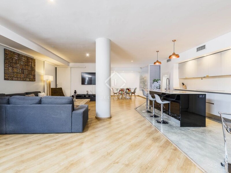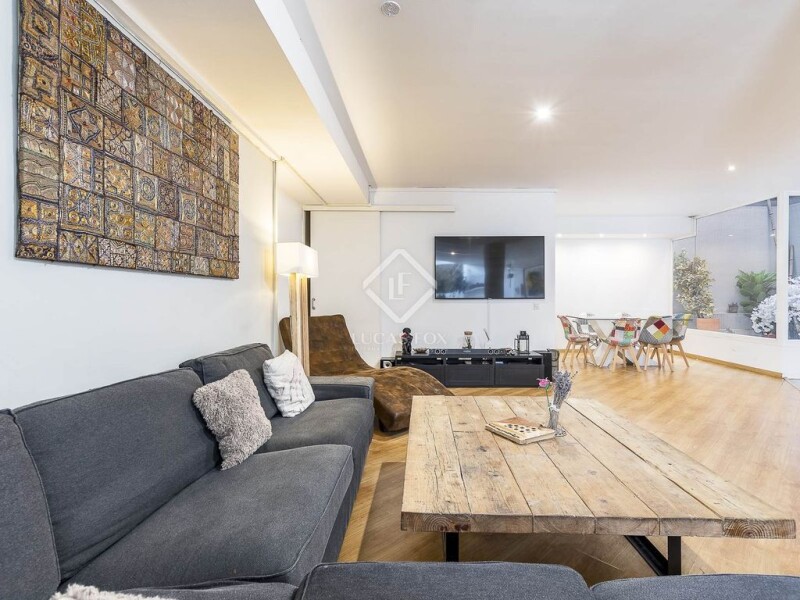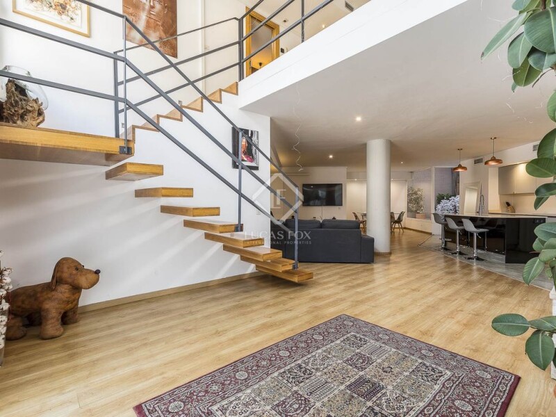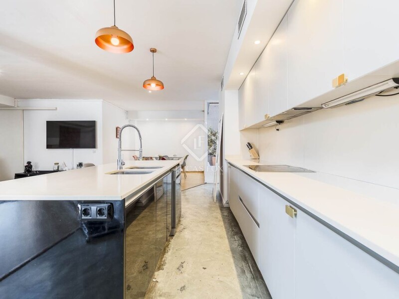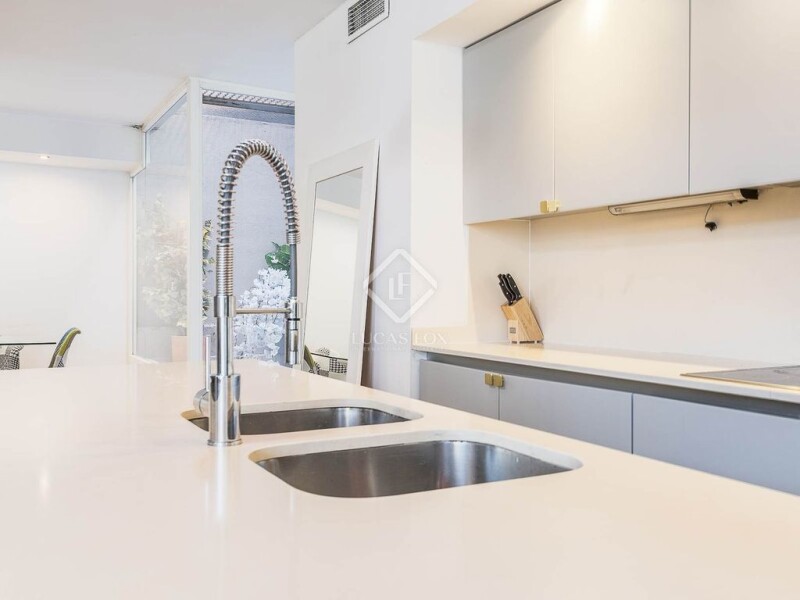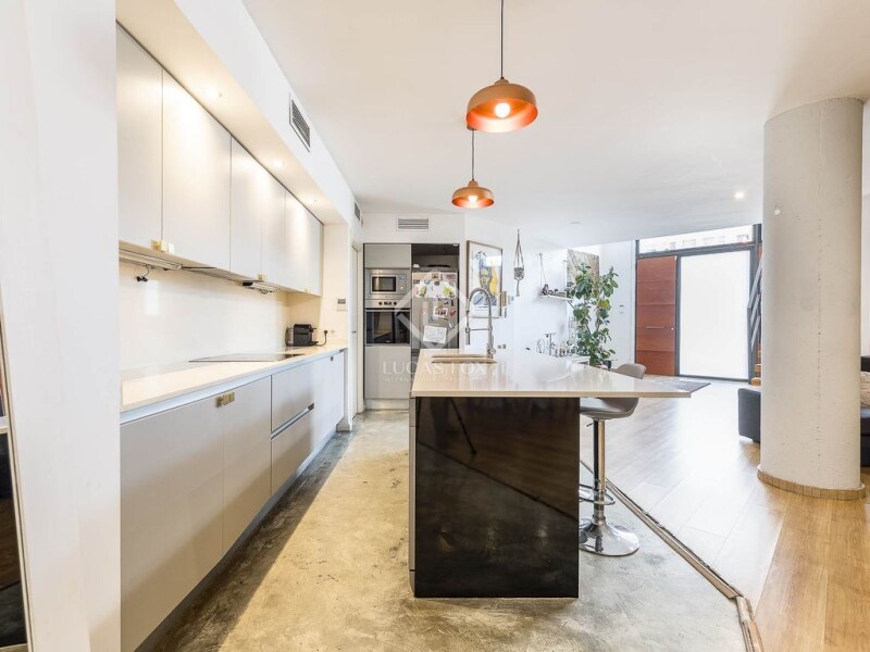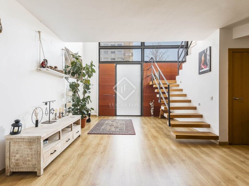 This very spacious duplex is located in a peaceful area of El Clot, a stone's throw away from the newly inaugurated Glories Park and very close to Westfield Glories shopping centre. This modern apartment boasts plenty of natural light and a convenient layout. Entering the property, we find a vast living area with an open kitchen on the right and the living area on the left. At the back, you can see a beautiful tree in a glazed area. The floor also has a guest toilet and three large storage spaces. Going upstairs, we find a great study or office area that connects with both double bedrooms, the bathroom and the terrace. The private terrace has a unique water fountain and a leafy wall, creating a wonderful place to relax. Please contact us for further information and to arrange a viewing.