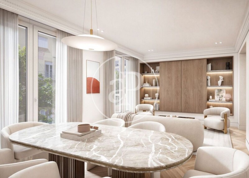 In a beautiful classic protected building, we find this wonderful flat, very bright, located in the best area of the Salamanca neighbourhood next to Hermosilla street. The property is characterised by its extraordinary luminosity in all its rooms, its high ceilings, its two beautiful balconies overlooking the street and its beautiful west-facing views. The property has been refurbished with high quality materials and special attention to design, combining elegance and comfort in all its rooms. The property has a magnificent and luminous living-dining room, a beautiful balcony and a bay window from which one can enjoy magnificent views of the tree-lined street, a magnificent designer kitchen fully equipped with top of the range appliances. The sleeping area consists of three beautiful bedrooms with large built-in wardrobes, two of them with en-suite bathrooms. Can you imagine living here?.