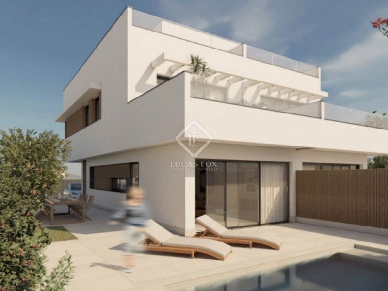 Would you like to live in a dream house just 5 minutes from the beach? If so, do not miss this unique opportunity to acquire a new build semi-detached single-family home that ends in January 2025. This is a luxury home that offers you comfort and exclusivity, where every detail is carefully selected and adapts to your needs. your needs. A house that will make you feel special and that will allow you to enjoy every moment. It is a house with a minimalist design and high quality, very sophisticated and with everything you need to enjoy life. The property has 121.10 habitable square meters, distributed over two floors and a roof terrace. On the ground floor you will find a cozy entrance hall which welcomes you to the design par excellence, you will find a useful guest toilet, a large dining room- living room with open kitchen and access to the exterior. On the first floor you will find two bedrooms and a full bathroom as well as an en-suite room with its own bathroom and a 17 square meter terrace. On the upper floor , the roof terrace, you can relax in the 48 square meter solarium, which also turns out to be a multipurpose area that you can adapt to your liking, with spectacular views. The plot has 273 square meters, and has exterior parking, swimming pool, chill out area and garden. All this with top quality finishes and a modern and elegant style. The environment in which this property is located is idyllic, with the best restaurants in the area around, you can enjoy both leisure and the tranquility of nature with the sea just 5 minutes away. Contact us and ask for more information about this incredible opportunity. Don't let her escape!.