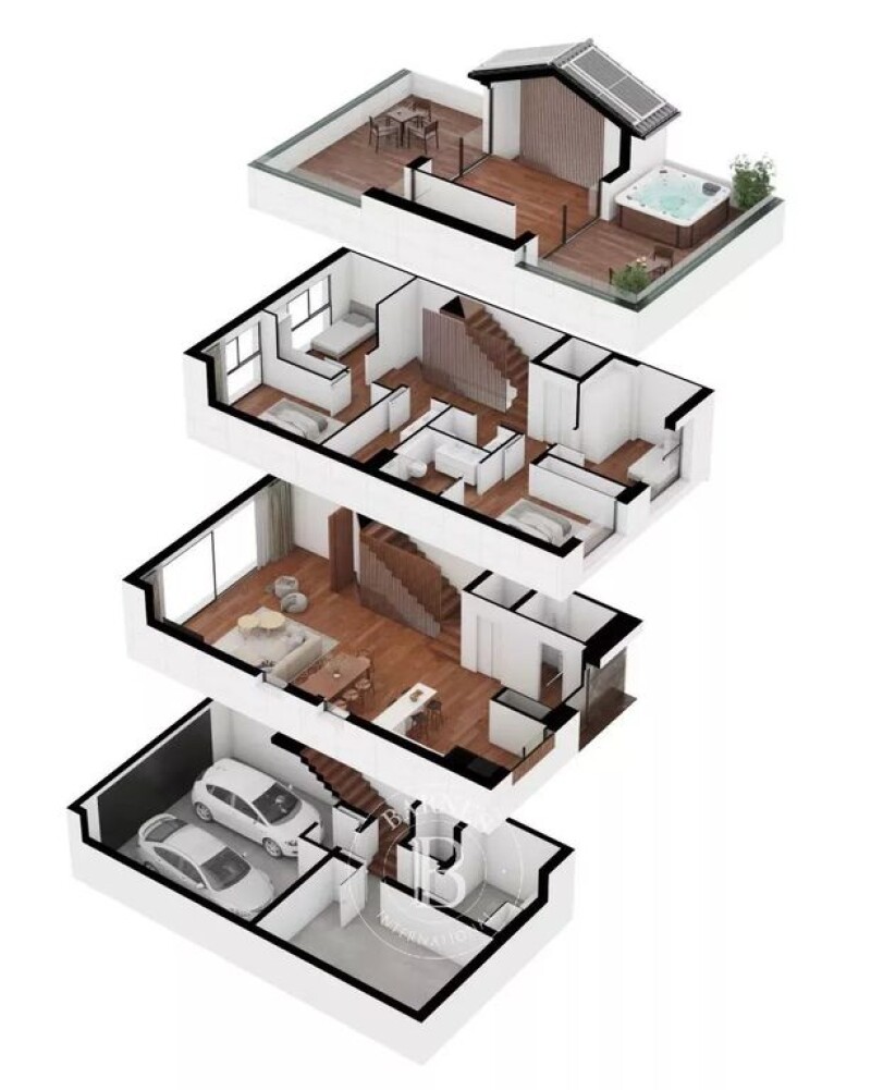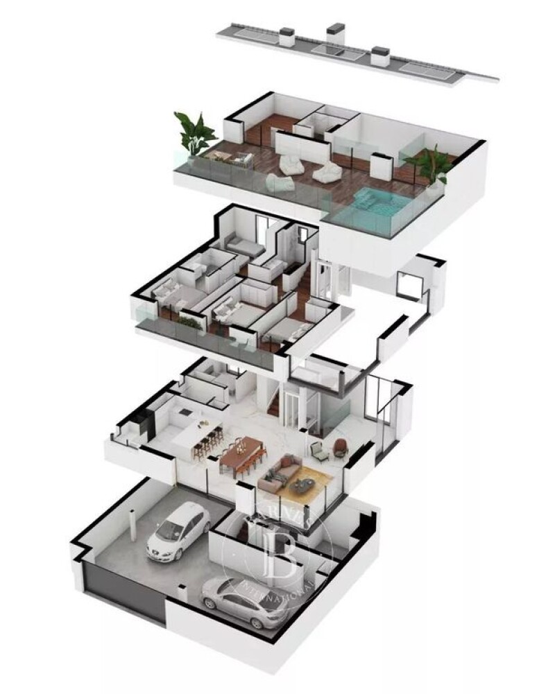 Barnes International presents this spectacular residential complex consisting of 5 detached houses and two blocks of 7 row semi-detached houses, aiming to create a modern home with top-quality finishes and respecting the environment thanks to the installation of photovoltaic panels on the roof of each house and aerothermal energy. The facades of the houses are ventilated and covered with Krion panels from the Porcelanosa brand, a material warm to the touch and with a texture similar to natural stone. It is an exclusive material, very hard, resistant, durable, easy to clean, and low maintenance. All the townhouses have a complete open kitchen by Porcelanosa, where a bar divides the space with the living-dining room, offering a great sense of spaciousness, multiplied by the large windows that occupy the entire side and give a view of the garden. The master bedroom has privileged sea views, as does the upper terrace, where we will find a spa/jacuzzi with four seats. In total, each house has 4 bedrooms, 4 bathrooms, a garage for two cars, a storage room, and an elevator to move freely between the house levels. Regarding the detached houses, they have 5 bedrooms, 5 bathrooms, 1 office, 1 storage room in addition to a large open kitchen towards a double-height living-dining room, a panoramic elevator, a garage for four cars, and a pool on the upper terrace where we can enjoy fantastic panoramic views of the surroundings. The privileged location of this residential complex allows, on the one hand, to enjoy the advantages of living on the Maresme coast, a few minutes' walk from the beach, and, on the other hand, to enjoy all the advantages of the city of Barcelona which is 20 minutes away. The location has all the services and is situated in front of the prestigious international private school Hamelin-Laie. The area has access to the B20, C32, and Ronda de Dalt highways within 2 minutes and is just 15km from the city of Barcelona and its international airport. Montgat is originally a small fishing village and is very close to Alella, another town known for its wine culture. Both, surrounded by gentle hills, vineyards, and very close to the sea, offer conditions that make it a very pleasant place to live all year round. There is also a good variety of local and international schools that have contributed to the growing popularity of the area among international property buyers looking for a relaxed and beautiful place close to Barcelona. Ski slopes in the Pyrenees are 120 minutes away and the area is suitable for leisure lovers seeking outdoor adventures and for those more fond of cultural activities. Living in "Pla de Montgat" is an ideal destination for all those families who want to enjoy an exclusive environment thanks to the private school Hamelin-Laie, its marina, and nearby golf courses.