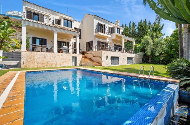 Luxurious and exquisite villa with stunning sea view for sale in La Quinta, Benahavis This stunning luxury villa is located in the prestigious area of La Quinta, Benahavis. Situated just a short drive from Puerto Banus and Marbella, this property offers the perfect balance between tranquility and convenience. Spread over a generous built area of 584m², this villa boasts 5 spacious bedrooms and 4 bathrooms, with en-suite bathrooms in 3 of the bedrooms. The villa sits on a plot of 1,085m², providing plenty of space for outdoor living. Indulge in the ultimate luxury with your own private pool, garden, and garage. As you enter the villa, you will be greeted by a beautifully designed interior with a fully furnished and fully fitted kitchen, perfect for entertaining guests. The villa also features a cozy fireplace, ideal for those chilly evenings. Additional features of this magnificent villa include a guest room, alarm system, security entrance, dining room, barbeque area, and a guest toilet. Enjoy breathtaking views of the sea, mountains, and golf course from the comfort of your private terrace. Experience the utmost comfort and convenience with amenities nearby, excellent air conditioning, and a home automation system. This villa is in excellent condition, with top-quality finishes and fittings throughout. The property also includes a cinema room, office room, and a ground floor patio. With its prime location, luxurious features, and stunning views, this villa offers the perfect opportunity to live in luxury in La Quinta, Benahavis. Don't miss out on this exclusive property!.