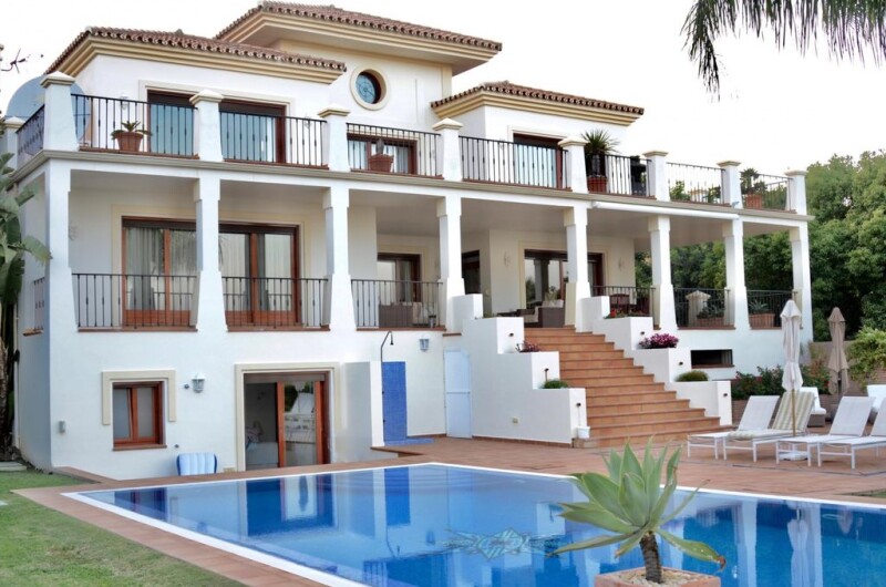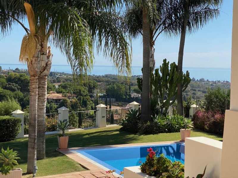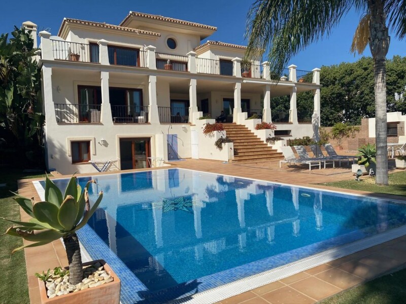 Stunning and spacious villa with ideal views of the sea, mountain and golf for sale in Los Flamingos, Benahavis This luxurious villa is located in the prestigious area of Los Flamingos, Benahavis, Malaga. Situated on a plot of 1,400m², this stunning property offers breathtaking views of the golf course, mountains, and the sea. With a total built area of 900m², including a 100m² terrace, this villa provides ample space for comfortable living. The villa boasts 5 spacious bedrooms and 5 bathrooms, ensuring plenty of accommodation for family and guests. The master bedroom offers stunning sea views and comes with an en-suite bathroom. All bedrooms are equipped with fitted wardrobes, providing ample storage space. The property features a fully fitted kitchen, perfect for preparing delicious meals. The kitchen comes equipped with all the necessary appliances and features a sleek and modern design. The villa also includes a dining room, ideal for hosting dinner parties and entertaining guests. For those who enjoy indoor entertainment, the villa offers a cinema room and a games room, ensuring hours of fun and relaxation. There is also a wine cellar, perfect for wine enthusiasts to store and display their collection. The villa is designed with utmost attention to detail and offers excellent condition throughout. It is equipped with air conditioning, ensuring a comfortable living environment all year round. The property also features a heated pool, allowing residents to enjoy a swim even during the cooler months. The location of the villa is highly desirable, with amenities, transport links, and shops all conveniently located nearby. The property is also close to golf courses, making it an ideal choice for golf enthusiasts. Additionally, the villa is close to schools, making it suitable for families with children. Overall, this luxury villa in Los Flamingos offers a perfect combination of elegance, comfort, and breathtaking views. With its extensive list of features and prime location, this property is truly a dream home.