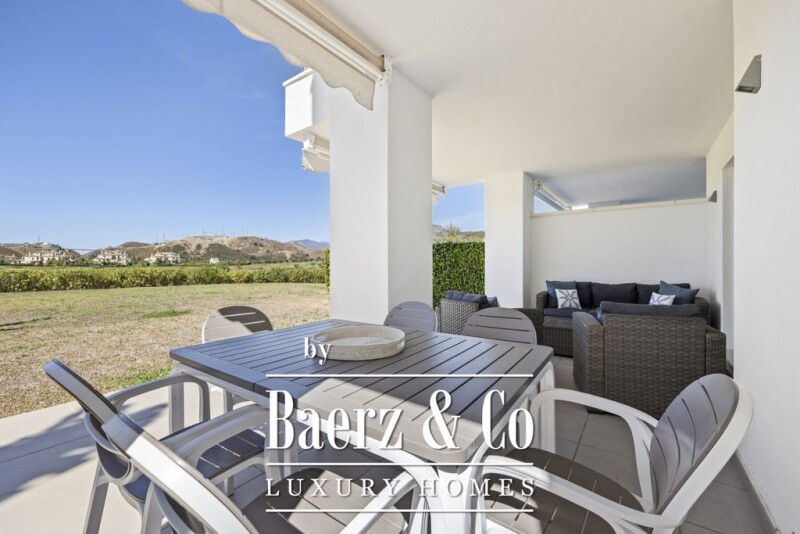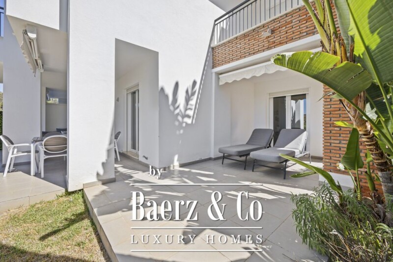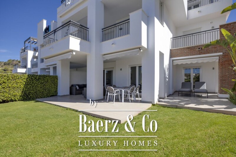 Welcome to a charming Mediterranean style community within the prestigious Los Arqueros Golf and Country House development. This exclusive low-density development has only 90 units of 2 and 3-bedroom apartments in elegant 3-story buildings. This 3-bedroom, 2-bathroom ground floor apartment is a spacious, tranquil retreat with impeccable interiors, high-end finishes, air conditioning, cream marble floors and a designer kitchen. The highlight of this home is its large private terrace of 48 m2, which opens to a magnificent garden space for private use. Here, you can enjoy with great privacy the stunning open views of the golf course and the sunsets that make this property something truly special. The urbanization has two large swimming pools, a children's pool and beautifully landscaped common areas. For greater convenience, the property is sold with an underground parking space and a storage room . The property is located a minutes drive from Los Arqueros Golf and Country Club and its tennis courts, gym, restaurants, golf shop and driving range. A 5-minute drive away is also the lively town center of San Pedro de Alcántara, with its charming beaches and new beach clubs, making this location the perfect place for both year-round living and a holiday home.