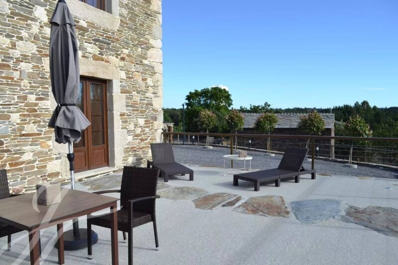 A magnificent property known as “Casa Toirán”, located in Láncara (Lugo), completely renovated in 2020 using original and recycled materials, with criteria of healthy and ecological architecture as evidenced by its biomass heating. In order to modernize the house while preserving its original charm, slate stone and stonework were used predominantly, as well as the traditional chestnut wood of this area... Casa Toirán is a traditional village building, more than a century old, built with stone, slate and wood. The careful restoration managed to create bright and cozy atmospheres, helped by the excellent insulation of the original construction, its beautiful views of nature and several French wood-burning fireplaces that put the icing on the cake to a unique property. The rural tourism complex has a main house and several annexes. It has four cozy apartments, two studios, living-dining room, multifunctional room for meetings, two traditional ovens, outdoor terraces, large gardens and green spaces, granary and private parking. Casa Toirán is strategically located between two Camiños de Santiago (Way of St. James), the Primitive, which passes through Lugo (about 30 minutes by car), and the French, which passes through Sarria (about 15 minutes). Due to its proximity to these two Camiños, the house is an ideal base for those people who make the stages of the Jacobean route. With its strategic location, the property is also relatively close to the Galician beaches, the touristic Ribeira Sacra and the main cities (in addition to Lugo, Santiago, A Coruña, Ourense, Pontevedra and Vigo). And the airports of A Coruña and Santiago are 100 km away by freeway. Given its location, close to Lugo, A Pobra de San Xiao and Sarria, all kinds of services can be found in the nearby surroundings: gas stations, restaurants, supermarkets, pharmacies, banks, medical centers, tourist offices, cabs, buses and train stations. A dream space in the beautiful Galician countryside.