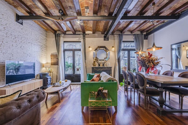 Beautiful and cozy one bedroom apartment of 111 m2 with original elements in Eixample Dreta a few steps from Arc de Triomf to update, but in very good condition. Upon entering the property, you can appreciate a very bright open space living - dining room with open kitchen. At the entrance there is also an open space towards the living room which is currently used as an office. The living - dining room is characterized by beautiful Catalan vault ceilings with reinforced steel beams, original walls of the property and 2 nice balconies facing the street. The open kitchen has built-in wooden cabinets, double door refrigerator and complete appliances, as well as two islands that provide a comfortable and cozy space for cooking. Then we continue through a hallway that leads to the night area where there is a large bathroom with shower recently renovated, and the large, cozy and bright master bedroom with balcony facing south facing courtyard. The property was completely renovated structurally a few years ago and has heating by electric radiators, nice wooden fans and is located in a regal building with new elevator.