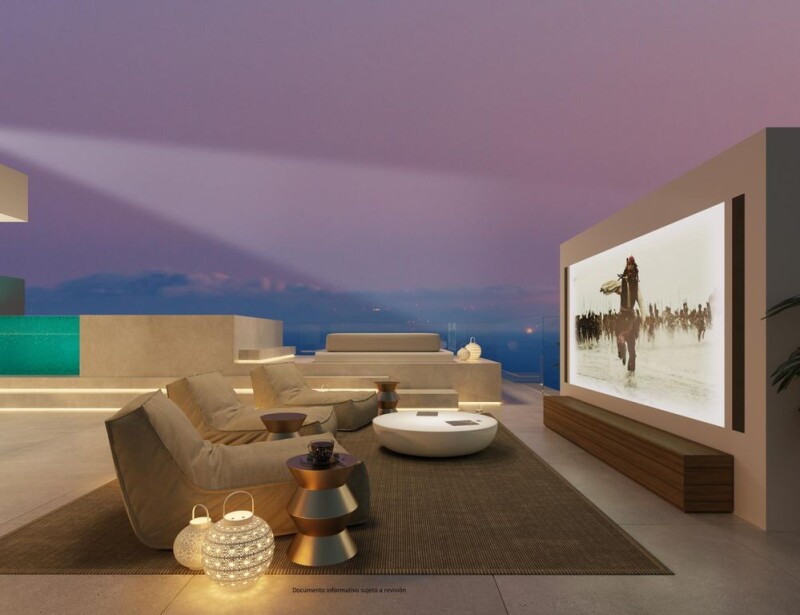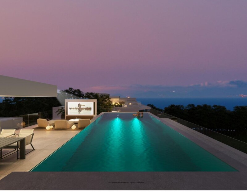 Impressive brand new luxury villa for sale in an exclusive location The Golden Mile, Marbella This exquisite high-end estate with stunning modern architecture is one of the villas of the exclusive new development located in the prestigious Marbella Golden Mile, an esteemed locale in Marbella, Malaga. Boasting 4 bedrooms and 5 bathrooms, this expansive property offers a generous total built area of 693.28m², including a sprawling terrace spanning 228.24m². Nestled on a plot measuring 338.98m², this villa showcases an exclusive rooftop pool, meticulously landscaped gardens, and a garage. Upon entering the premises, you will be captivated by the awe-inspiring frontline beach vistas. The villa is fully furnished and equipped with top-of-the-line amenities such as air conditioning and satellite TV. The basement level encompasses a guest room, storage facility, and a fitness area. Enhanced security measures are in place with the inclusion of an alarm system. This newly constructed villa is replete with a plethora of luxurious features. The dining room is ideal for hosting elegant dinner parties, while the living room provides a cozy space for relaxation. The parquet floors exude an air of sophistication throughout the interior. Benefiting from its privileged location, this villa offers sweeping panoramic views of the sea and the meticulously maintained surrounding gardens. The indoor pool allows for year-round swimming enjoyment, while the covered terrace provides a shaded oasis for al fresco dining. Additionally, the villa includes fitted wardrobes, a convenient elevator, and a guest apartment. Beyond its opulent amenities, this villa is conveniently situated in proximity to various amenities and shops. The beach is just a short stroll away, making it an idyllic haven for beach enthusiasts. Seize the opportunity to acquire this extraordinary villa in the highly sought-after Marbella Golden Mile.